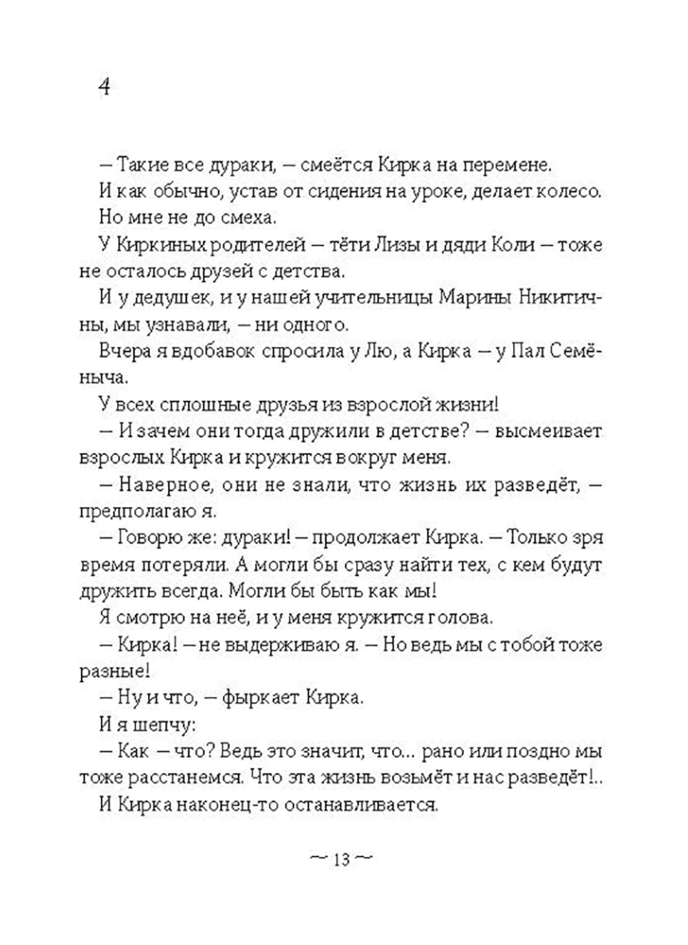 Девочки такие разные: Кирка занимается спортом, а Варя играет на пианино, Кирка прыгает выше всех и бегает быстрее, зато Варя умеет выдумывать новые интересные слова. Одинаковые у них только причёски и царапины на коленках. Но для дружбы на всю жизнь этого мало. Нужно общее дело, чтоб не расставаться до самой старости! Например, снимать кино. В главной роли, конечно, Кирка - ловкая, смелая, настоящая каскадёрка! А Варя - сценарист и оператор. Но кино приходится забросить, когда с одной из девочек случается беда... а подруга приходит ей на помощь. Нельзя бросать дружбу на полпути. Каскадёрки никогда не сдаются! Анна Анисимова - автор детских книг, лауреат премии Маршака и финалист премии Крапивина. В издательстве «Волчок» выходили её книги «Гутя» и «Кедровый слоник». Для детей среднего школьного возраста.| Издательство | Волчок |