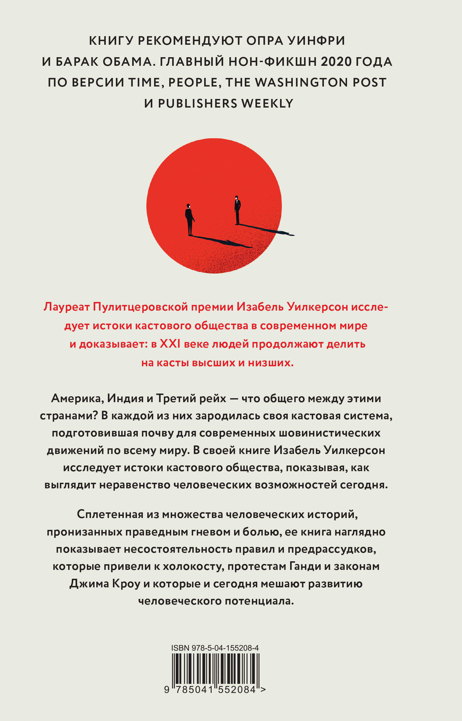 Лауреат Пулитцеровской премии Изабель Уилкерсон исследует истоки кастового общества в современном мире и доказывает: в XXI веке людей продолжают делить на касты высших и низших. • Книгу рекомендуют ОПРА УИНФРИ и БАРАК ОБАМА. • ГЛАВНЫЙ НОН-ФИКШЕН 2020 ГОДА по версии TIME, People, The Washington Post и Publishers Weekly. • Победитель премий PEN, Los Angeles Times Book Prize и National Book Critics Circle Award. • Будущий хит NETFLIX. Америка, Индия и Третий Рейх - что общего между этими странами? В каждой из них зародилась своя уникальная кастовая система, разделившая людей на низшие и высшие сорта и подготовившая почву для современных шовинистических движений по всему миру. В своей книге лауреат Пулитцеровской премии, журналистка Изабель Уилкерсон рассматривает способы угнетения и ограничения людей в правах на основании их национальности, цвета кожи или места рождения, а также показывает, какой ущерб это наносит и их качеству жизни, и экономике в целом. Ее книга доказывает: даже несмотря на прогресс, кастовая система все еще существует, лишая людей равных прав и возможностей, убивая заложенный в них человеческий потенциал. Сплетенная из множества человеческих историй, пронизанных несправедливостью, гневом и болью, книга «Касты» наглядно показывает несостоятельность искусственных правил и предрассудков, которые привели к Холокосту, протестам Ганди и законам Джима Кроу - а в XXI веке к масштабным расовым протестам в Америке. Это также противоядие от идей шовинизма и ксенофобии, которые до сих пор овладевают умами людей по всему миру. ------------------------------ «Подробное исследование расизма, неравенства и несправедливости. Это болезненно резонансная книга, и она вышла в нужное время». - The Guardian «Книга Уилкерсон - мощный и поучительный отчет о том, как иерархия воспроизводит саму себя, а также призыв к нелегкой работе по ее устранению». - The Washington Post «Потрясающе смело как на уровне идеи, так и в подаче… Экстраполяция идей Уилкерсон на современную Америку наводит на тревожные мысли о том, как глубоко кастовая система укоренилась в современном обществе». - San Francisco Chronicle «Сила этой книги - в человеческих историях, связанных между собой, словно жемчуг. "Касты" - это запоминающееся чтение, несущее огонь праведного гнева в острой, как алмаз, прозе, которую станут изучать будущие поколения журналистов». - Minneapolis Star Tribune| Издательство | Эксмо |