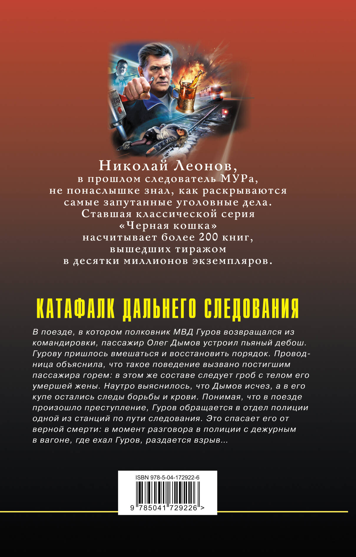 В поезде, в котором полковник МВД Гуров возвращался из командировки, пассажир Олег Дымов устроил пьяный дебош. Гурову пришлось вмешаться и восстановить порядок. Проводница объяснила, что такое поведение вызвано постигшим пассажира горем: в этом же составе следует гроб с телом его умершей жены. Наутро выяснилось, что Дымов исчез, а в его купе остались следы борьбы и крови. Понимая, что в поезде произошло преступление, Гуров обращается в отдел полиции одной из станций по пути следования. Это спасает его от верной смерти: в момент разговора с дежурным в вагоне, где ехал Гуров, раздается взрыв… Николай Леонов, в прошлом следователь МУРа, не понаслышке знал, как раскрываются самые запутанные уголовные дела. Ставшая классической серия «Черная кошка» насчитывает более 200 книг, вышедших тиражом в десятки миллионов экземпляров.| Издательство | ООО "Издательство "Эксмо" |