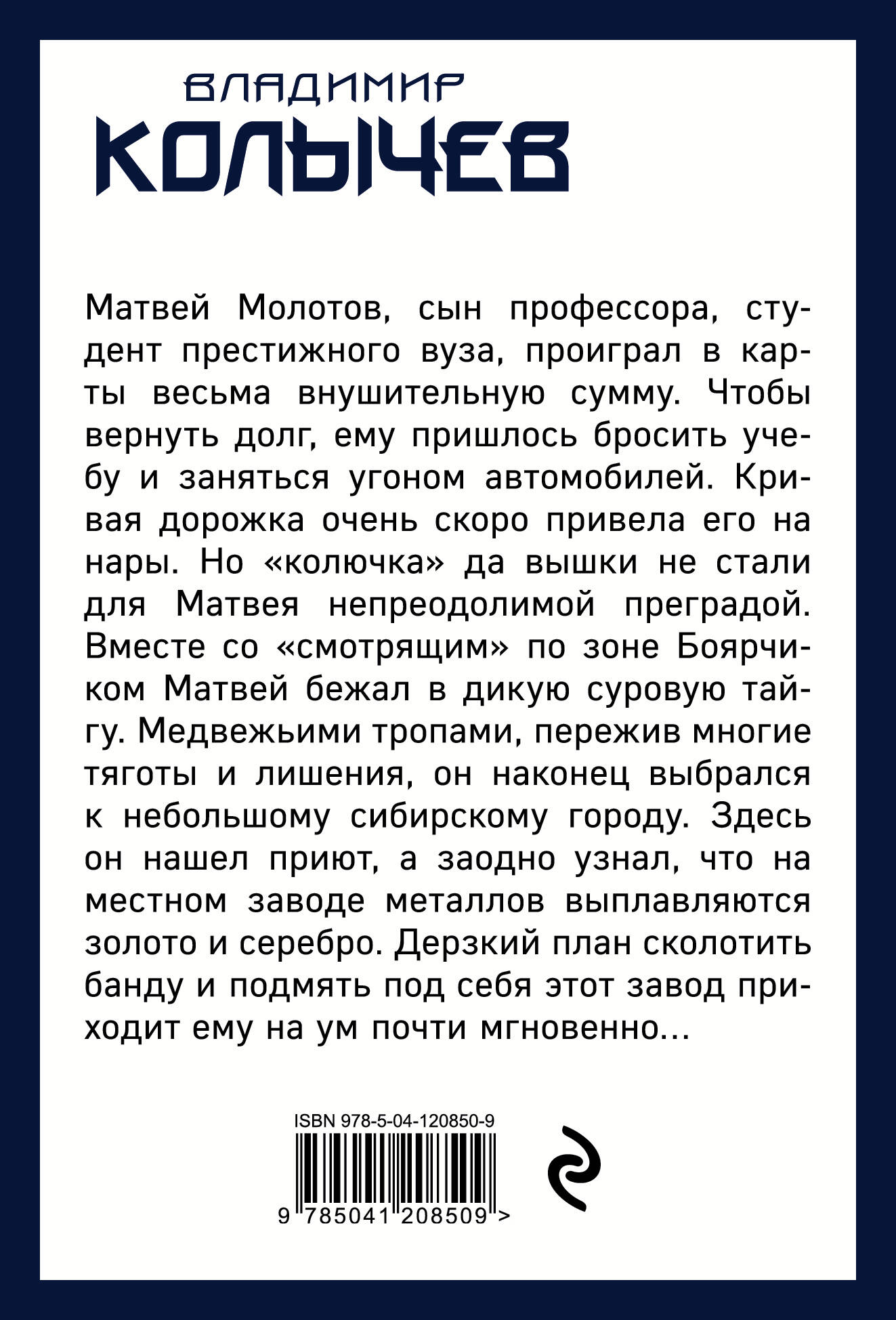 Матвей Молотов, сын профессора, студент престижного вуза, проиграл в карты весьма внушительную сумму. Чтобы вернуть долг, ему пришлось бросить учебу и заняться угоном автомобилей. Кривая дорожка очень скоро привела его на нары. Но «колючка» да вышки не стали для Матвея непреодолимой преградой. Вместе со "смотрящим" по зоне Боярчиком Матвей бежал в дикую суровую тайгу. Медвежьими тропами, пережив многие тяготы и лишения, он, наконец, выбрался к небольшому сибирскому городу. Здесь он нашел приют, а заодно узнал, что на местном заводе металлов выплавляется золото и серебро. Дерзкий план сколотить банду и подмять под себя этот завод приходит ему на ум почти мгновенно…| Издательство | ООО "Издательство "Эксмо" |