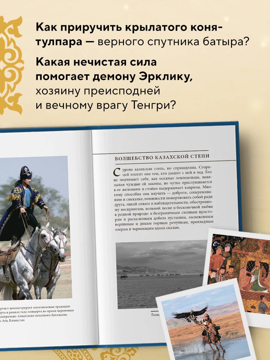 Как море безбрежна и необъятна Великая степь. Здесь батыры рождаются не в царских палатах - героями сыновей и дочерей степи делают горячие сердца и распахнутые души. Здесь Сырдарья и Амударья - не реки, а неразлучные сестры с трагической судьбой. Здесь под звездным куполом ночного неба оживают старинные легенды о похищенной принцессе и семерых разбойниках, о морских конях-драконах и семиголовых птицах, о несокрушимом духе и настоящей любви. Книга «Казахские мифы» откроет вам удивительную, самобытную и пеструю, как цветущая степь, мифологию казахов. Вы узнаете, как бог неба Тенгри родился из пылающего яйца, а Мать-огонь От-Эне - из стопы другой великой богини, Умай, кто такие баксы и акыны и как легендарный поэт и певец Коркут создал кобыз, музыка которого исцеляет душу. Познакомитесь с совсем не дружелюбными существами казахской демонологии: златовласыми демоницами албасты, великанами и карликами, русалками кульдиргиш, которые, как их славянские сестры, заманивают юношей и щекочут их до смерти, красавицей-вампиршей жезтырнак с медными когтями и казахской Бабой Ягой Жалмауыз кемпир. Как приручить крылатого коня-тулпара - верного спутника батыра? Что общего у легенды о поэте Асане Кайгы и его возлюбленной пери-лебеди и скандинавскими сагами? И как выглядит демон Эрклик - хозяин преисподней и вечный враг Тенгри? На эти и другие вопросы вы найдете ответы на страницах этой книги, а цветные и черно-белые иллюстрации дополнят путешествие по казахской степи, где каждая река, гора и ущелье готовы поделиться с путником печальной, поучительной или забавной историей. Серия книг «Мифы мира. Самые сказочные истории человечества» познакомит вас с захватывающими историями разных стран и народов. Это идеальный способ погрузиться в мир иных культур и расширить свой кругозор. Станьте свидетелем эпических битв богов, загадочных ритуалов и легендарных героев!| Издательство | ООО "Издательство "Эксмо" |