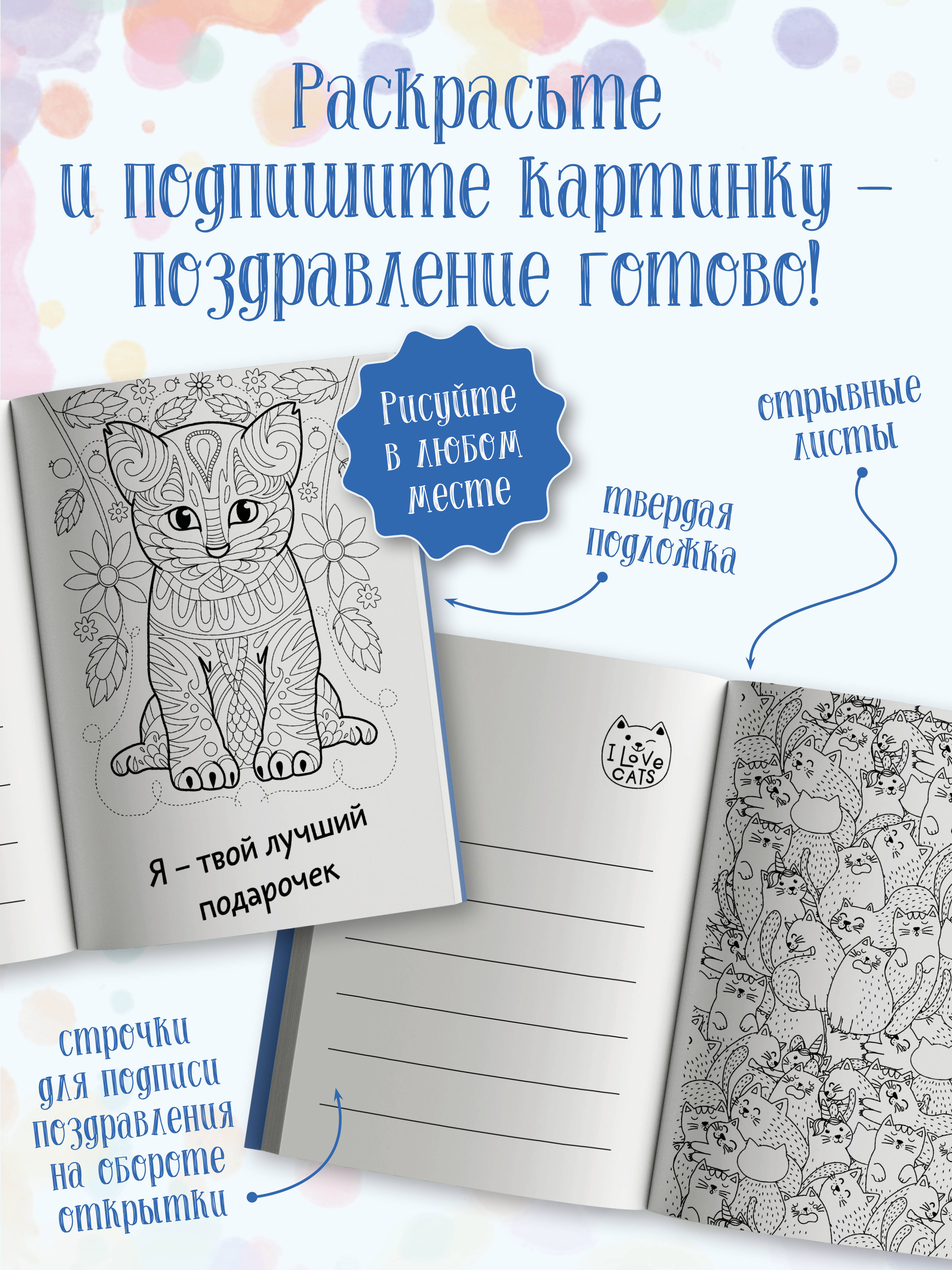 Каждому нужен котик. Открытка-раскраска