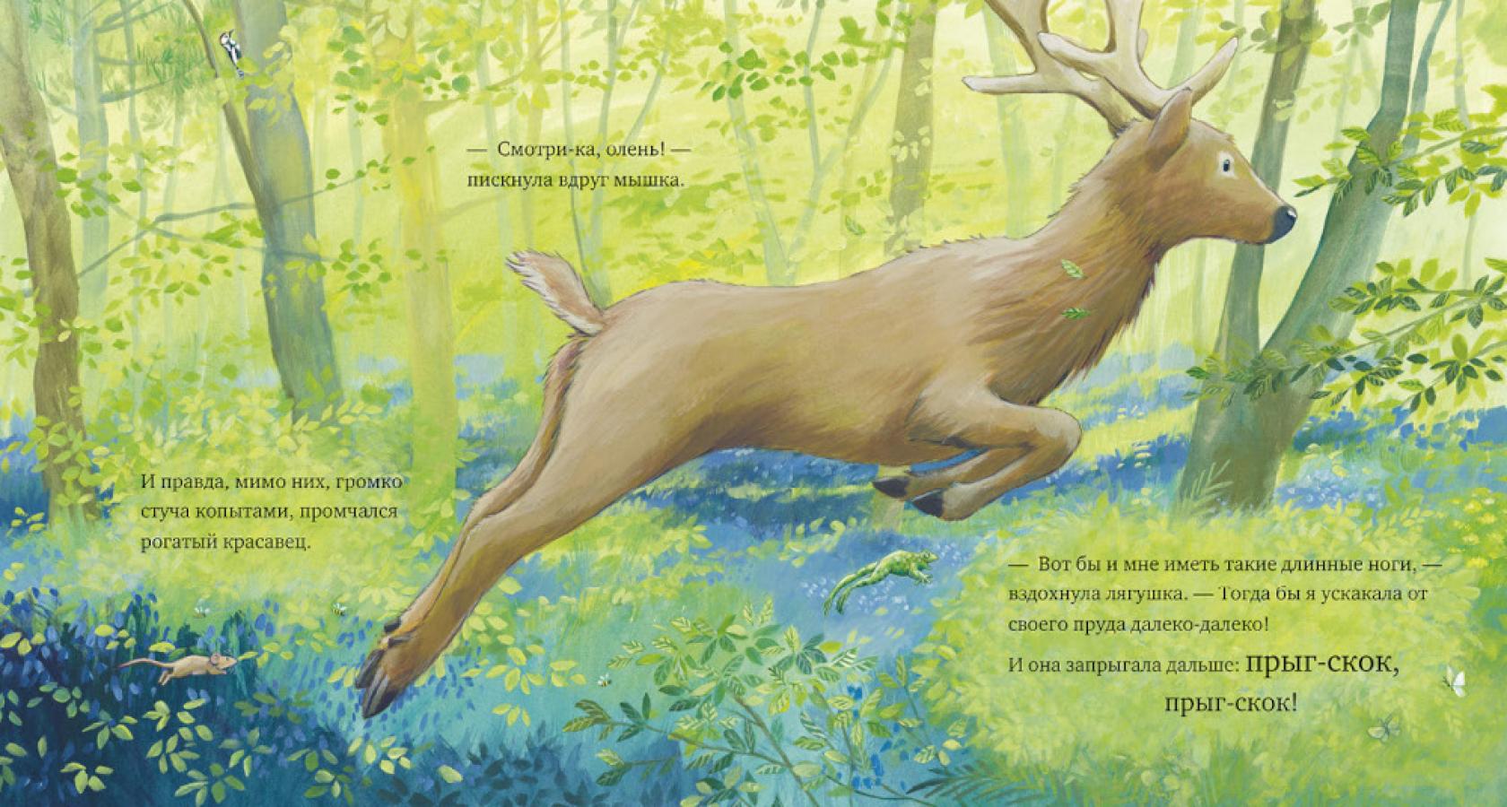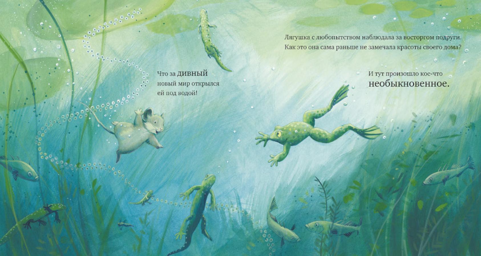 «Каждый из нас чудо!» - уютная история с волшебными иллюстрациями Джейн Чапмен о дружбе и чудесах, которые всегда рядом. Лягушка совсем заскучала в своем пруду. Вокруг все те же камыши да кувшинки - ничего особенного. Настоящее волшебство наверняка скрывается где-то в других краях! Вместе с подругой-мышкой лягушка отправляется в увлекательное путешествие, чтобы узнать, где же прячется чудо. Сумеет ли она отыскать его? И какое открытие ждет лягушку, когда она вернется домой? Эта книга детская большого формата и с крупным шрифтом идеальна для первого чтения. Яркие картинки этой книги для детей и понятный сюжет легко увлекут малыша.| Издательство | Клевер-Медиа-Групп |