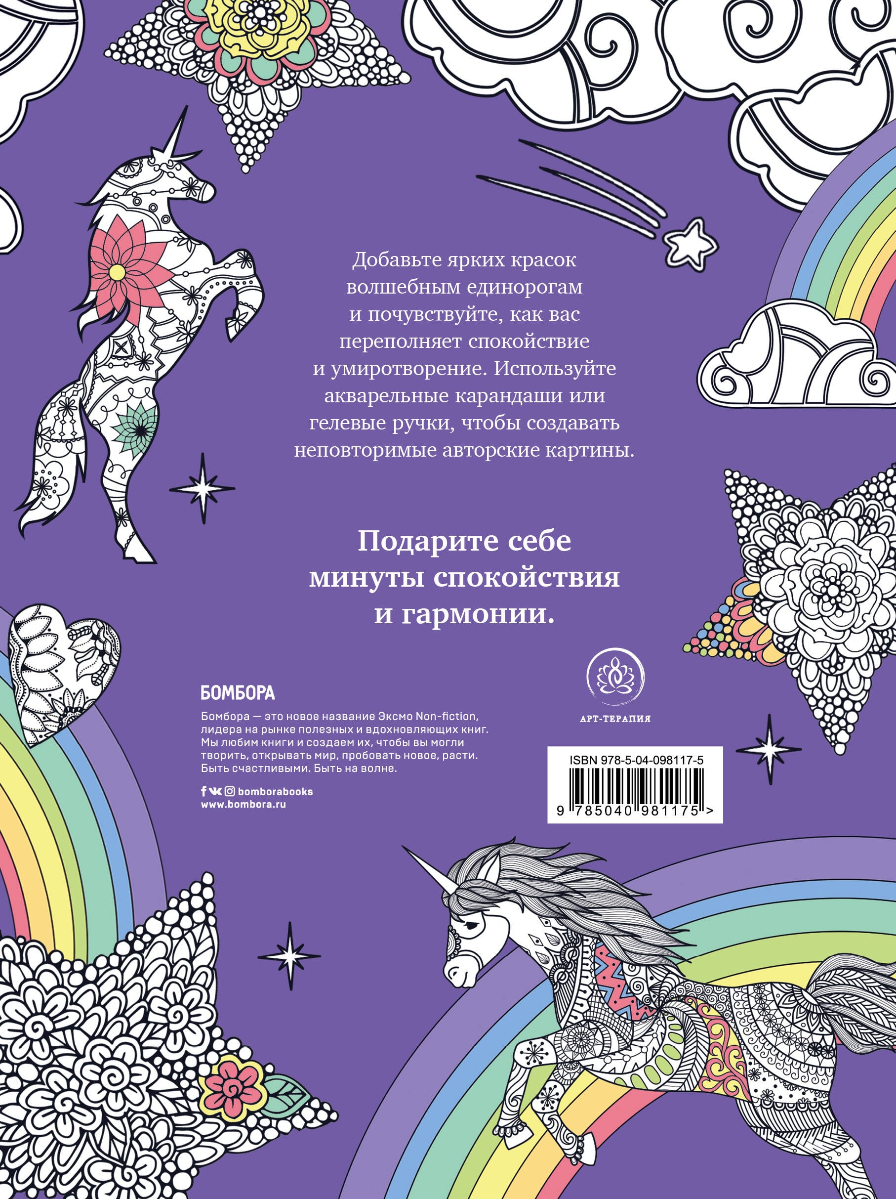 О чем эта книга Новая серия «Арт-терапия» - это множество причудливых узоров и фантастических рисунков, которые подарят вам спокойствие и умиротворение и помогут избавиться от стресса. Возьмите цветные карандаши или ручки и полностью отключитесь от внешнего мира, раскрашивая загадочных единорогов, и через некоторое время вы вернетесь уже полностью обновленным человеком. Используйте холодные цвета (голубой, синий, фиолетовый), если хотите расслабиться. И теплые (красный, оранжевый, желтый), если хотите ощутить прилив сил и энергии. Решите, что необходимо вам сегодня. Медитативные раскраски для взрослых уже получили популярность и признание во всем мире, а теперь они пришли в Россию. Предлагаем попробовать и вам ощутить удивительное терапевтическое воздействие искусства. Для кого эта книга Для тех, кто хочет отдохнуть после тяжелого дня и расслабиться. Для мечтателей, мечтающих раскрасить мир в свои цвета. Как работать с книгой Удобнее всего использовать акварельные карандаши: они ярче обычных и не размазываются по бумаге. Для мелких узоров советуем взять цветные гелевые ручки. Фишки книги Мировой бестселлер! Множество восхитительных кошек и котят. Причудливые оригинальные узоры.| Издательство | ООО "Издательство "Эксмо" |