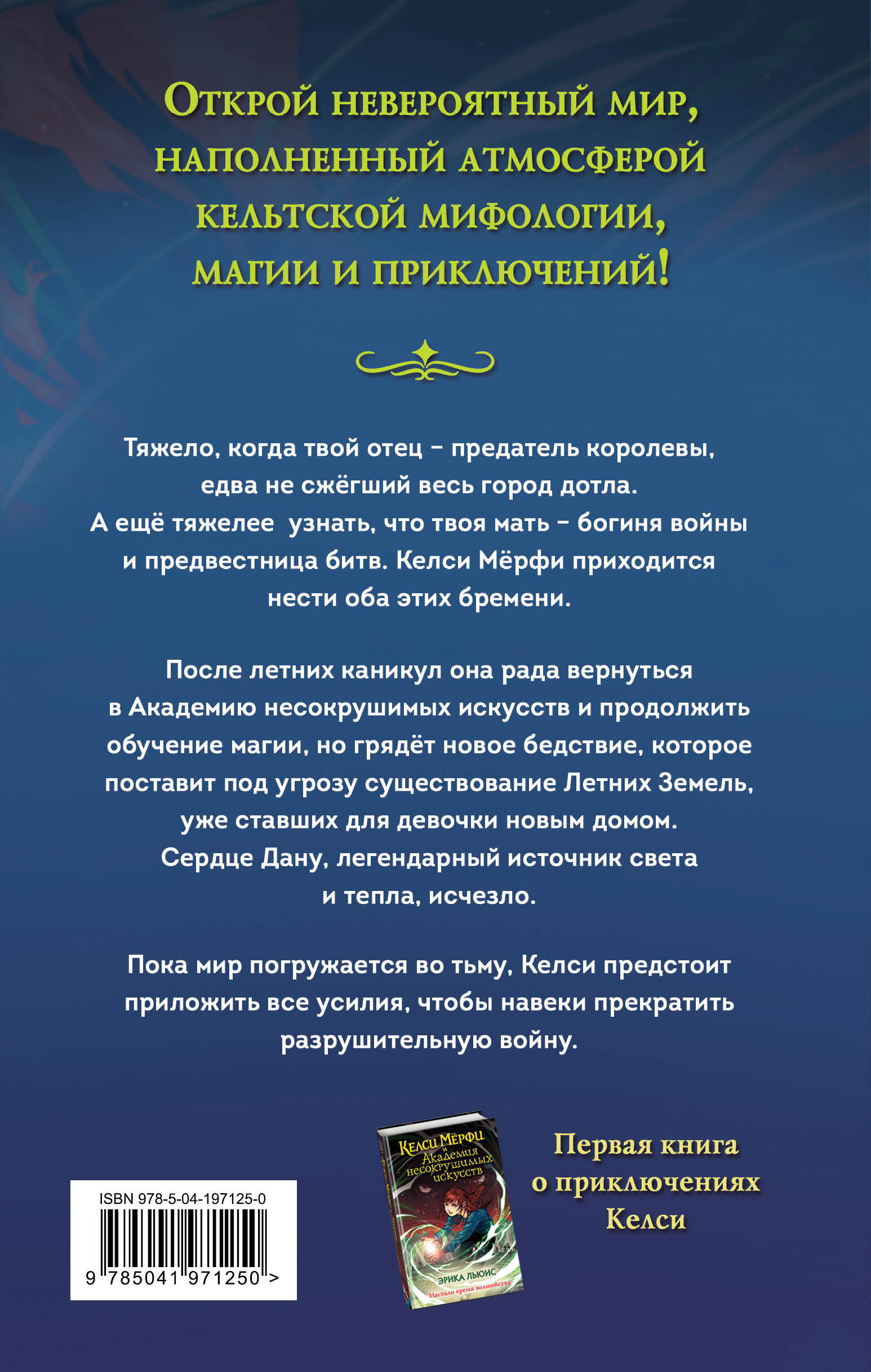Зачарованный мир на грани войны. Академия Несокрушимых искусств готовит воинов. В ней случайно оказывается девочка из человеческого мира. Вторая часть увлекательной серии о невероятных приключениях Келси Мерфи. Тяжело иметь отца, который является печально известным предателем. Еще труднее иметь мать, которая является предзнаменованием гибели. После летнего отсутствия Келси Мерфи рада вернуться в Академию нерушимых искусств. Но едва она и ее друзья обосновались, как их посетила ее мать - богиня войны Немайн - с предупреждением о грядущем бедствии. Сердце Дану, легендарный источник света и тепла в Землях Лета, будет украдено. И только Келси и ее друзья могут это остановить. Пока они вместе с остальными учениками едут в Летний город, чтобы принять участие в славной Церемонии Вознесения, у Келси нет времени ни на военный парад, ни на пышный бал, ни даже на визит к отцу: она полна решимости защитить Сердце и свой новый дом.| Издательство | ООО "Издательство "Эксмо" |