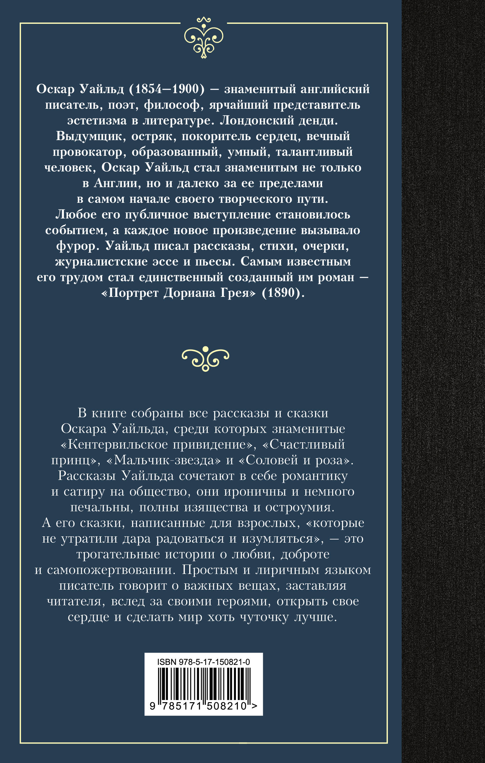 От автора знаменитого романа «Портрет Дориана Грея» - одной из самых продаваемых книг 2021 года. Оскар Уайлд - один из самых известных и знаковых писателей и драматургов второй половины XIX века. В этот сборник вошли 14 наиболее удачных рассказов и сказок для взрослых, соединивших в себе иронию, сатиру и гротеск от мэтра английского эстетизма.