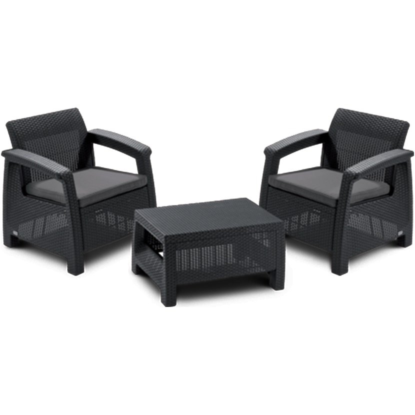 Сочетание красоты и элегантности. Компактная форма каркаса и оптимальные размеры комплекта позволят украсить небольшие сады и балконы. В комплект входят стол и два стула с мягкими подушками. Элегантность, комфорт и эргономичный дизайн гарантируют приятный отдых на природе. Легкость установки и легкий уход - дополнительные преимущества мебели.