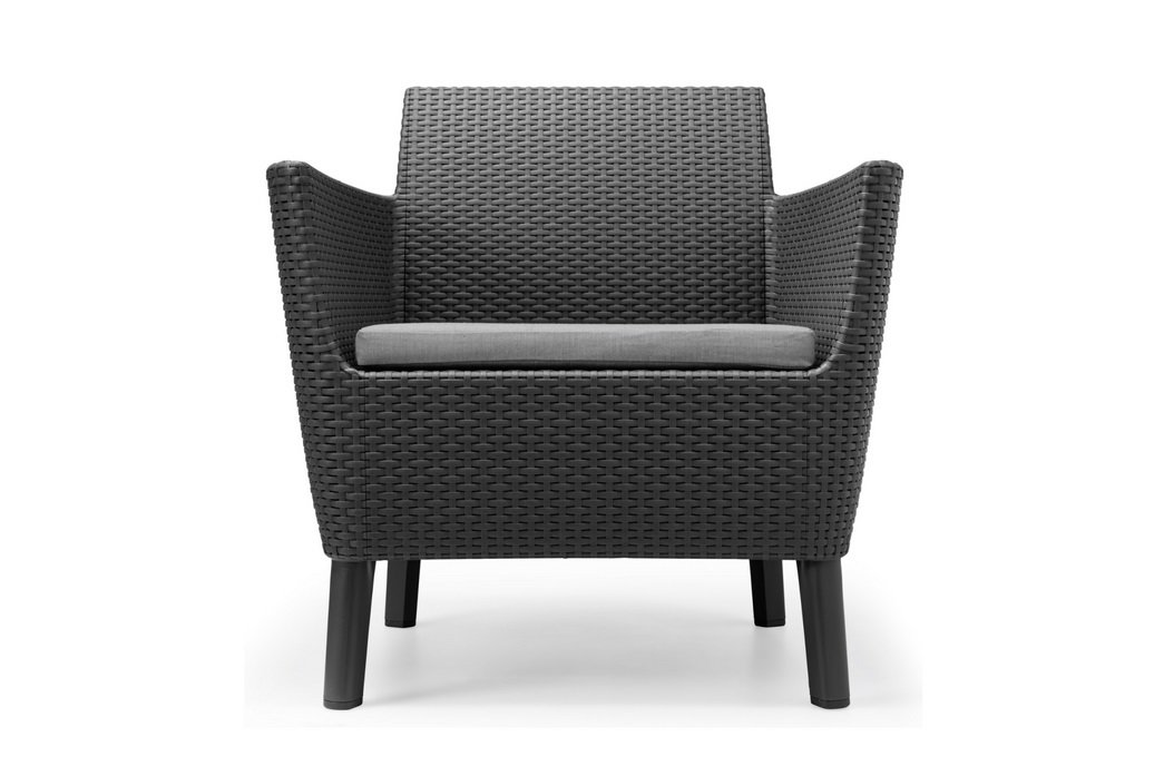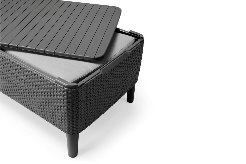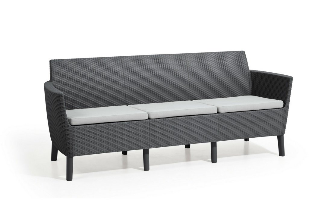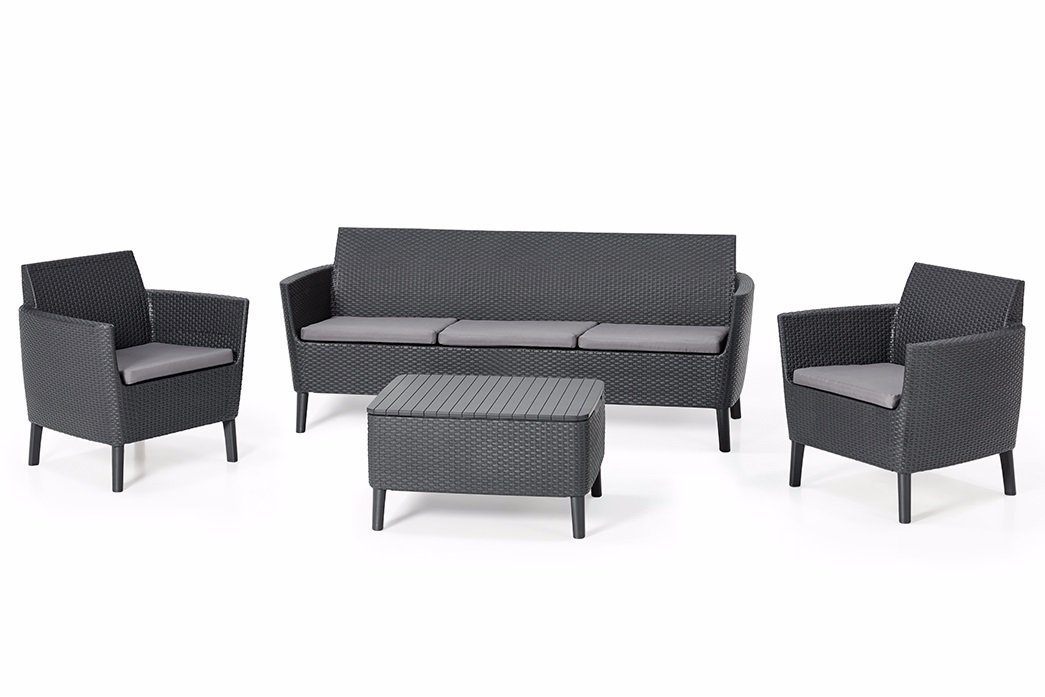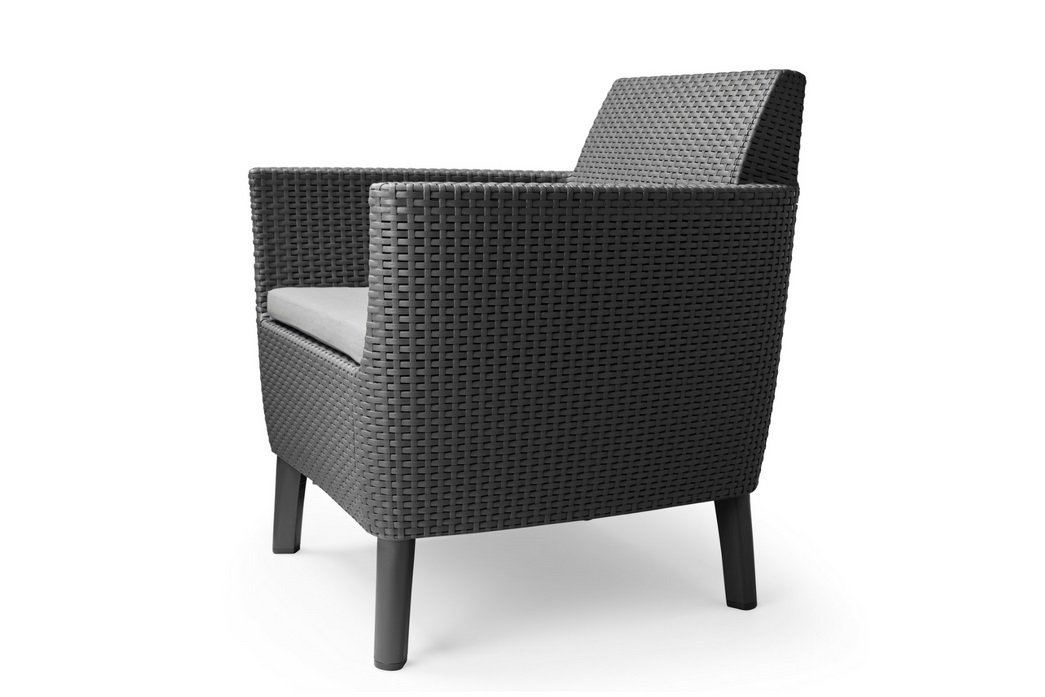 Основными особенностями комплекта мебелиSalemo являются современный дизайн, элегантность и очень высокий комфорт. Комплект включает в себя просторный, удобный двухместный диван, 3 кресла и столик с функцией хранения. Мебель отличается оригинальной текстурой, имитирующей натуральный ротанг. Комплект идеально подходит для оформления сада, террасы и интерьера. Мебель проста в сборке и уходе.