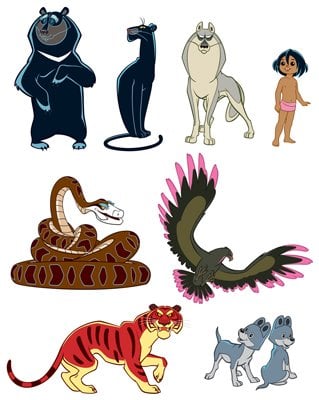 КФМ2-12672 Комплект вырубных мини-плакатов. Герои сказки Маугли 8 персонажей из мультфильма с УФ-лаком