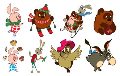 КФМ2-12673 Комплект вырубных мини-плакатов. Герои сказки Винни Пух 7 персонажей из мультфильма с УФ-лаком