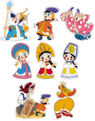 КФМ2-12674 Комплект вырубных мини-плакатов. Герои сказки Вовка в тридевятом царстве 8 персонажей из мультфильма с блестками в лаке