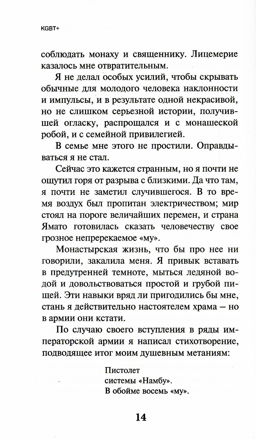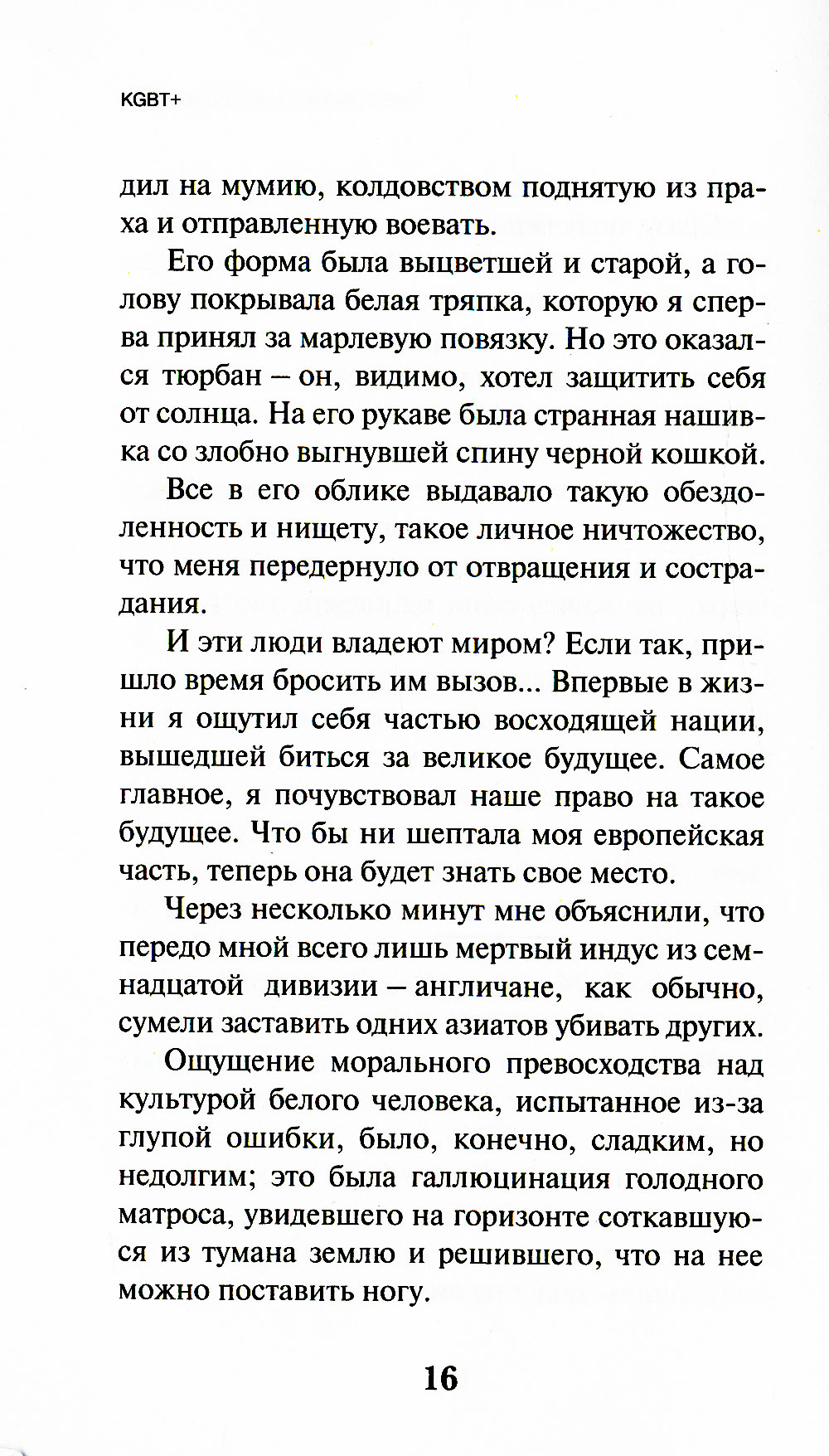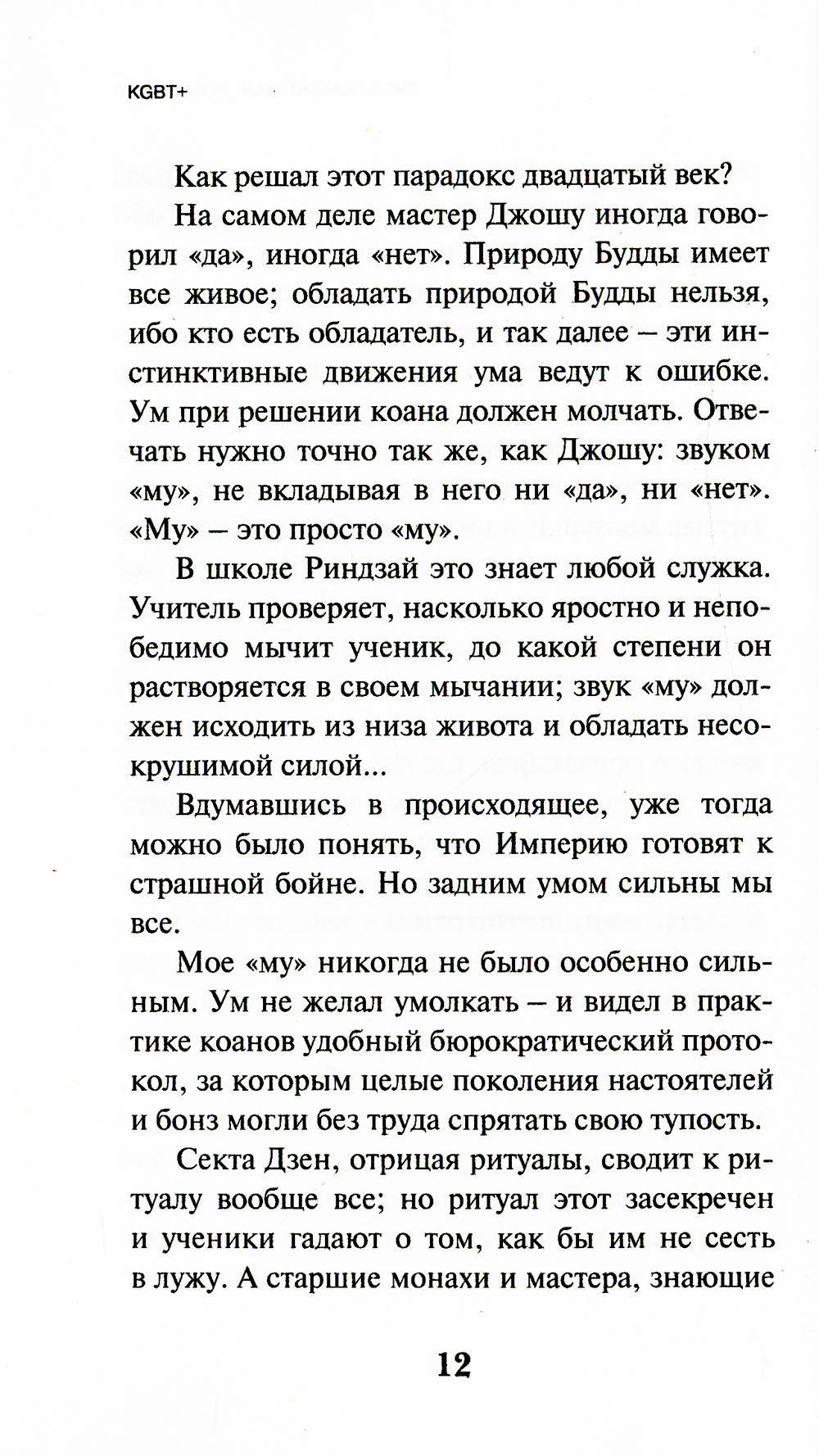 Вбойщик KGBT+ (автор классических стримов «Катастрофа», «Летитбизм» и других) известен всей планете как титан перформанса и духа. Если вы не слышали его имени, значит, эпоха green power для вас еще не наступила и завоевавшее планету искусство В2В (brain-to-brain streaming) каким-то чудом обошло вас стороной. Но эта книга - не просто очередное жизнеописание звезды шоу-биза. Это учебник успеха. Великий вбойщик дает множество мемо-советов нацеленному на победу молодому исполнителю. KGBT+ подробно рассказывает историю создания своих шедевров и комментирует сложные факты своей биографии, включая убийства, покушения и почти вековую отсидку в баночной тюрьме, а также опровергает многочисленные слухи о своей личной жизни. Настоящее издание впервые включает повесть «Дом Бахии» о прошлой (предположительно) жизни легендарного вбойщика в Японии и Бирме. Книга не только подарит вам несколько интересных вечеров, но и познакомит с аутентичными древними психотехниками, применение которых позволит пережить нашу великую эпоху с минимальным вредом для здоровья и психики.| Издательство | Эксмо |
