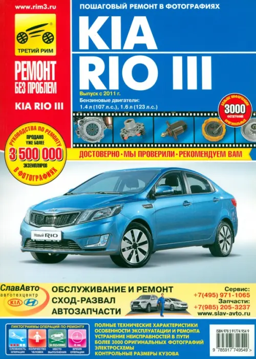 Руководство по эксплуатации, обслуживанию и ремонту Kia Rio III с 2011 г. выпуска с бензиновыми двигателями 1.4 л. (107 л.с.), 1.6 л. (123 л.с.)