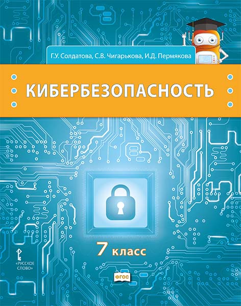 <div class="tab-pane fade in active" id="annotation"> Учебник разработан в соответствии с требованиями Федерального государственного образовательного стандарта основного общего образования.<br></br> Курс «Кибербезопасность» направлен на повышение цифровой грамотности школьников. Он поможет детям познакомиться с разными возможностями Интернета, научиться вовремя распознавать онлайн-риски (технические, контентные, коммуникационные, потребительские и риск интернет-зависимости), успешно разрешать проблемные ситуации в Сети, защищать свои персональные данные и управлять ими.<br></br><p></p><div class="annotacion_text_author_title"><b>Авторы:</b></div><b>Солдатова Галина Уртанбековна</b><div class="annotacion_text_author">Член-корреспондент РАО, профессор МГУ им. М.В. Ломоносова. Главный редактор журнала «Дети в информационном обществе» (С 2009г.). Лауреат Премии Российской Федерации в области образования (2010). Автор около 250 публикаций. Директор Фонда «Развития Интернет».</div><b>Чигарькова Светлана Вячеславна</b><div class="annotacion_text_author">Научный сотрудник кафедры психологии личности факультета психологии МГУ им. М.В. Ломоносова, заместитель директора Фонда Развития Интернет.<br></br></div><b>Пермякова Ирина Дмитриевна</b><div class="annotacion_text_author">Практикующий психолог, финалист конкурса «Педагог года Москвы - 2017» в номинации «Педагог-психолог».</div> </div>| Издательство | Русское слово |