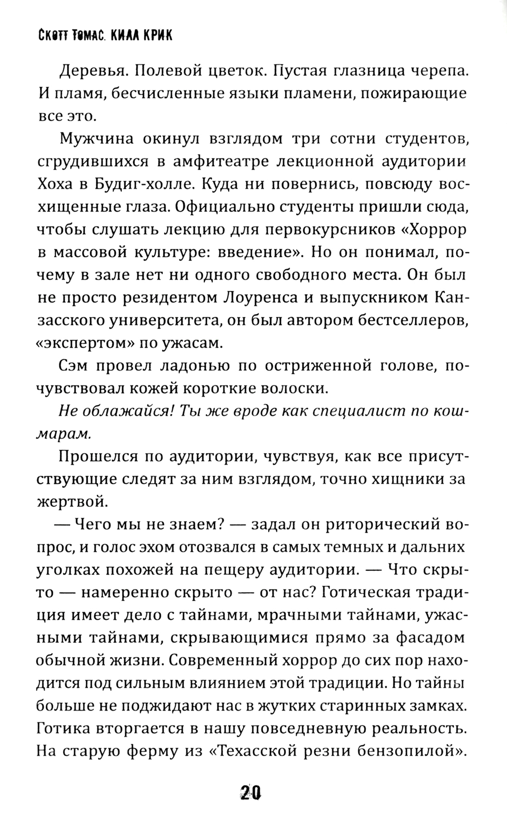 На Кровавом ручье стоит дом. Пустой. Тихий. Заброшенный. Но скоро его двери распахнутся вновь... Однако не спешите радоваться, ведь что-то таится в тени, с нетерпением ожидая встречи с гостями... Древняя легенда оживет, когда порог проклятого дома переступят четверо писателей ужасов. То, что должно было стать обыкновенным шоу, обернется настоящим кошмаром. Сущность, которую они пробудят, будет преследовать и мучить их, желая сделать писателей частью своего кровавого наследия…| Издательство | Рипол Классик |