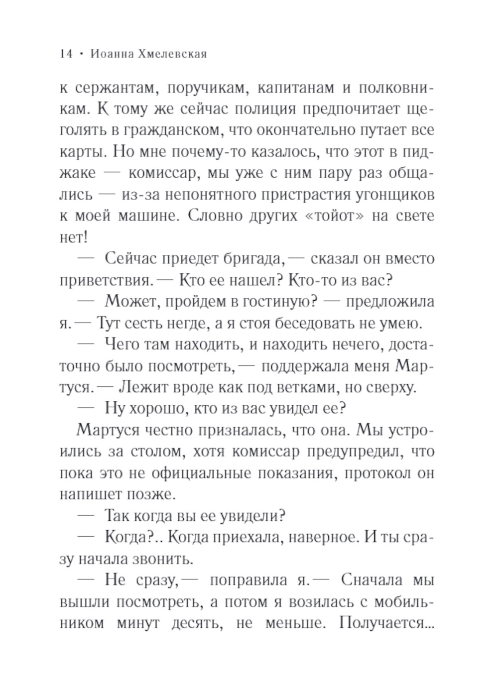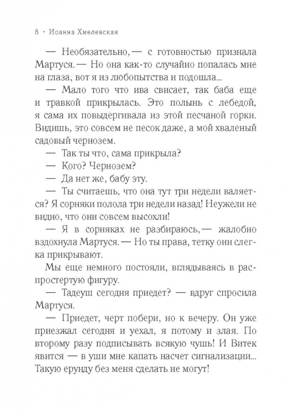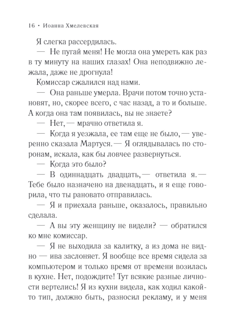 Почти всю жизнь пани Иоанна прожила в Варшаве, в тесной квартирке на четвертом этаже, в старом доме без лифта, с шумными соседями. Но настал момент, и она переехала в собственный домик в пригороде столицы. Теперь ей бы наслаждаться тишиной и комфортом, но вот незадача: у помойки под ивой обнаруживается труп рыжеволосой женщины. Согласно документам, жертва - Барбара Борковская, известная журналистка, в прошлом прокурор с подмоченной репутацией. Однако вскоре в Варшаве появляется живая и здоровая Барбара. Заинтригованная пани Иоанна решает выяснить что к чему и вскоре убеждается, что все нити тянутся к ее старому дому...| Издательство | Аркадия |