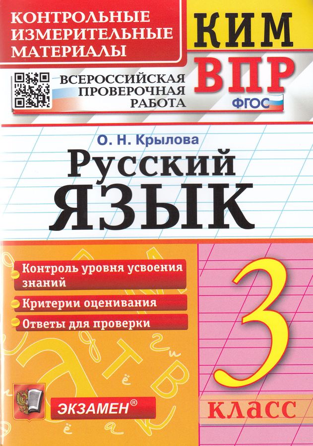 КИМ ВПР. РУССКИЙ ЯЗЫК. 3 КЛАСС. КОНТРОЛЬНЫЕ ИЗМЕРИТЕЛЬНЫЕ МАТЕРИАЛЫ. ВСЕРОССИЙСКАЯ ПРОВЕРОЧНАЯ РАБОТА. Издание десятое, переработанное и дополненное. ФГОС.| Издательство | Издательство «Экзамен» |