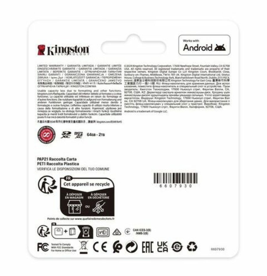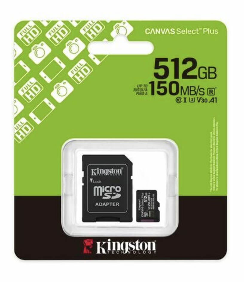 Kingston Canvas Select Plus Gen3 - прочная и высокопроизводительная microSDXC-карта с объёмом 512 ГБ, подходящая для смартфонов, планшетов, камер и других устройств.