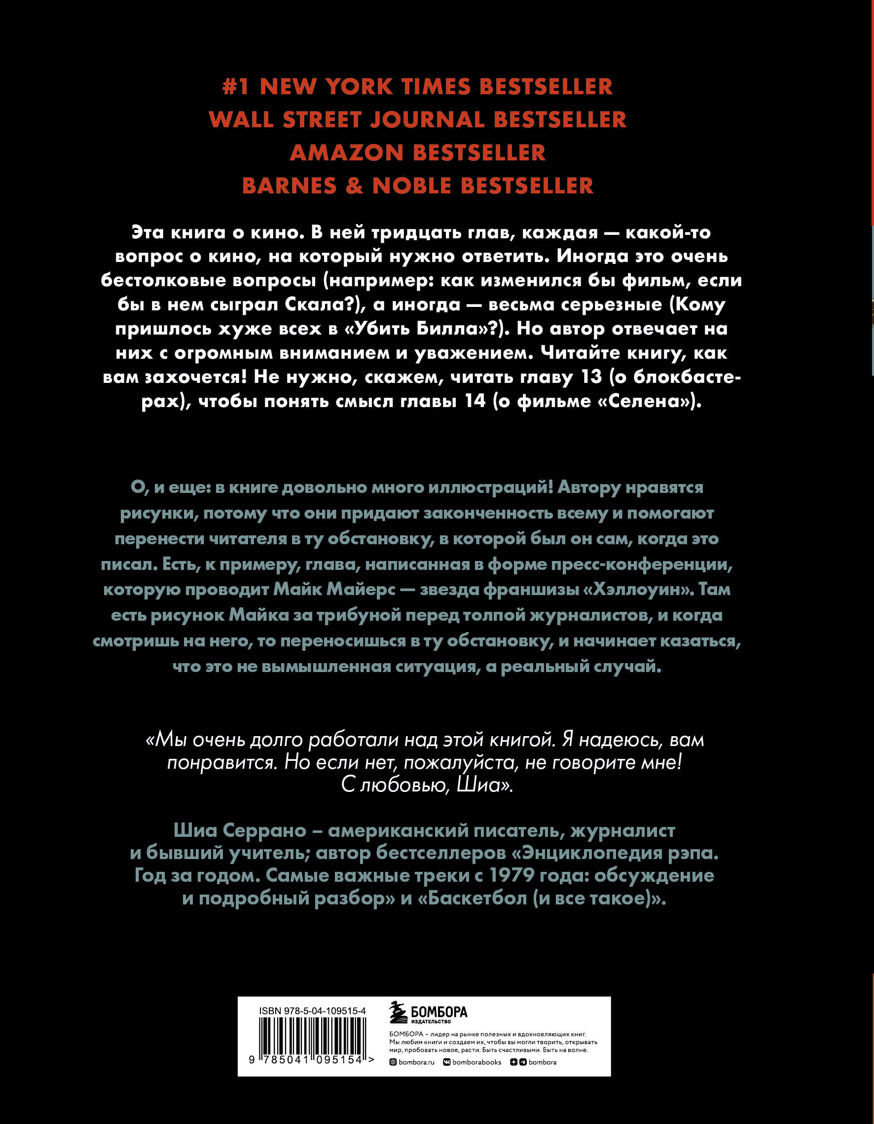 Привет! Это Шиа. Здесь должен быть красивый текст о моей новой книге, но вместо этого я решил сам ответить на вопросы, которые у вас скорее всего появятся. 1. Что это вообще за книга? Это книга о кино, вот что это. Я написал ее, потому что обожаю кино, потому что оно имело для меня огромное значение с самого детства. И, вероятно, будет важной частью моей жизни вплоть до самой смерти. Или пока не перестанут снимать новые части «Форсажа». Любопытно, что случится раньше? 2. Как читать эту книгу? Очень просто. В ней тридцать глав, каждая - какой-то вопрос о кино, на который нужно ответить. Иногда это очень бестолковые вопросы, а иногда - весьма серьезные. Но я отвечаю на них (надеюсь, что так) с огромным вниманием и уважением. Читайте ее, как вам захочется. Не нужно, скажем, читать главу 13 (о блокбастерах), чтобы понять смысл главы 14 (о фильме «Селена»). О, и еще: в книге довольно много рисунков. Мне нравятся иллюстрации, потому что они придают законченность всему и помогают перенести читателя в ту обстановку, в которой был я сам, когда это писал. Есть, к примеру, глава, написанная в форме пресс-конференции, которую проводит Майк Майерс - звезда франшизы «Хэллоуин». Глупо, конечно, но там есть рисунок Майка за трибуной перед толпой журналистов, и когда смотришь на него, то переносишься в ту обстановку, и начинает казаться, что это не вымышленная ситуация, а реальный случай. 3. Ты придерживался каких-то правил, когда писал эту книгу? Пожалуй, единственное как бы правило, которого я придерживался, - не тратить слишком много времени и энергии на разговоры о фильмах, вышедших до 1980-х. Я просто сосредоточился на фильмах, которые мне нравятся. Некоторые из них - времен 1980-х, а все остальные были сняты уже в 1990-х, 2000-х или даже 2010-х. 4. Погоди, я только что понял: единственная причина, по которой ты пишешь предисловие в таком формате, - это потому что сама книга построена в виде ответов на вопросы? Бинго!| Издательство | ООО "Издательство "Эксмо" |