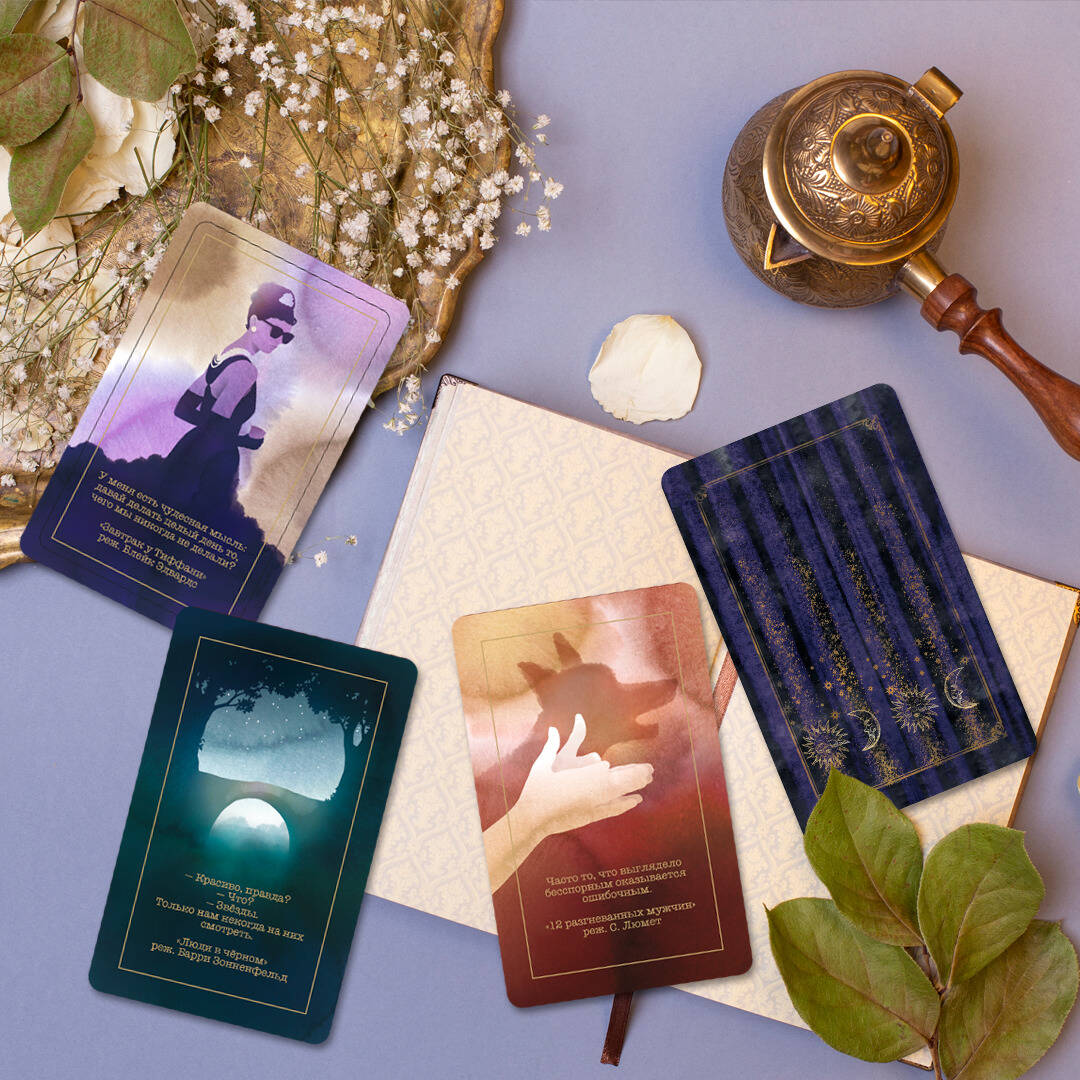 Станьте режиссером своей жизни! Перед вами уникальная колода кинокарт. На каждой из них вы найдете метафорическую акварельную иллюстрацию и цитату из фильма. Используйте их как возможность получить совет от своего подсознания, узнать новое, насладиться игрой своего воображения! Метафорические ассоциативные карты (МАК) - это психологические инструменты, которые с помощью образов помогают найти ответы на сложные вопросы и разобраться в себе. Иллюстрации, цитаты перекликаются с нашими страхами, надеждами, опытом, запуская мыслительный процесс для лучшего понимания своего состояния и истинных желаний. - «Матрица», - «Завтрак у Тиффани», - «Большая рыба», - «Сталкер», - «Молодость», - «Твин Пикс», - «Бегущий по лезвию»... ...и ещё 33 фильма, которые помогут разобраться в себе и принять нужные решения. Фильмы в руках Надежды Железняк, психолога, писателя и первого культтерапевта, и Наталии Новиковой, ведущего редактора раздела «Кино, музыка и медиапроекты» издательства «Бомбора», становятся вашими личными психологами. А уникальные иллюстрации Анны Цымбал помогут познать себя!| Издательство | ООО "Издательство "Эксмо" |