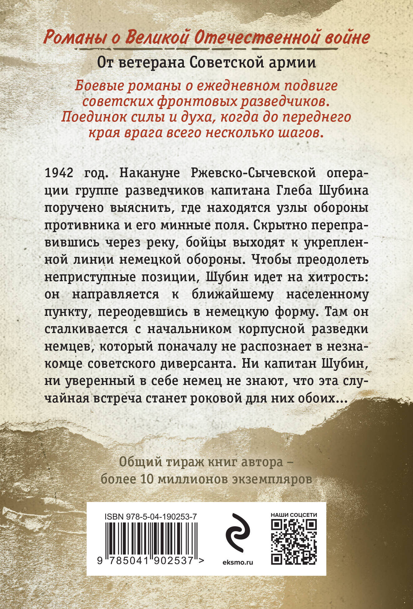1942 год. Накануне Ржевско-Сычевской операции группе разведчиков капитана Глеба Шубина поручено выяснить, где находятся узлы обороны противника и его минные поля. Скрытно переправившись через реку, бойцы выходят к укрепленной линии немецкой обороны. Чтобы преодолеть неприступные позиции, Шубин идет на хитрость: он направляется к ближайшему населенному пункту, переодевшись в немецкую форму. Там он сталкивается с начальником корпусной разведки немцев, который поначалу не распознает в незнакомце советского диверсанта. Ни капитан Шубин, ни уверенный в себе немец не знают, что эта случайная встреча станет роковой для них обоих…