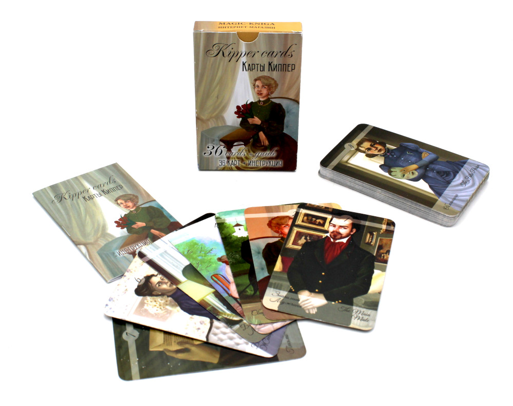 Гадальные карты Киппер - сравнительно молодая колода с интересной историей. По одной из версий колода Kipper была создана немкой Сюзанной Киппер, гадалкой, не захотевшей пользоваться колодой Ленорман по причине французского се происхождения. Оракул состоит из 36 карт. В колоде вас ждут шесть карт, описывающих персоны и типажи, и тридцать карт, описывающих различные ситуации. «Kipper cards» погрузит вас в атмосферу конца XIX - начало XX столетия.| Издательство | Издатель А.Г.Москвичев |