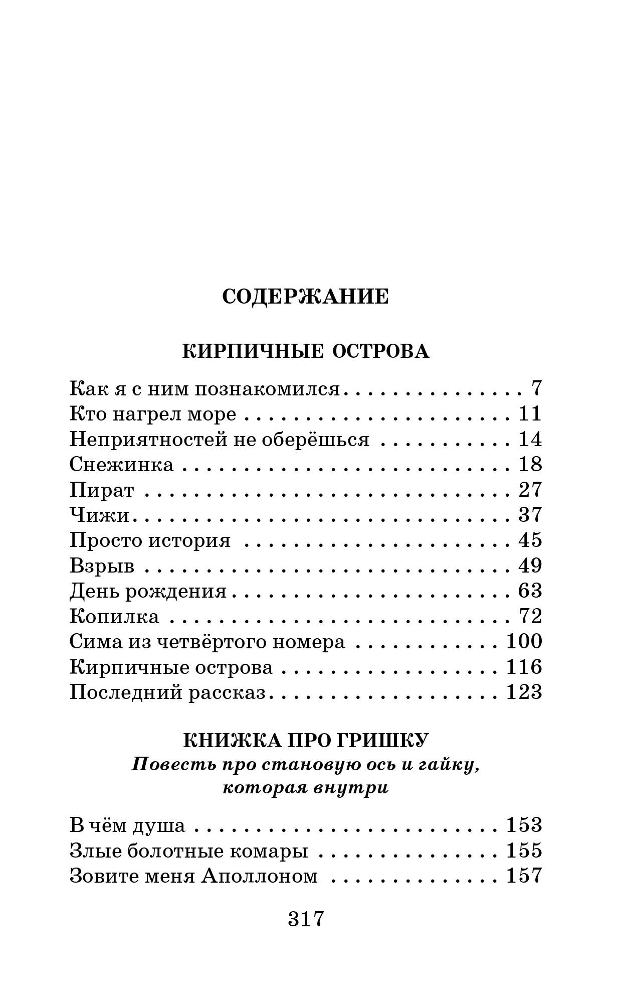 Кешке повезло - с ним постоянно случается что-нибудь интересное! Ему дарят живые подарки, приносят домой чижей и приглашают в удивительное путешествие по кирпичным островам. А всё потому, что у мальчишки хорошие друзья - Мишка, Сима и другие ребята. Они вместе выпутаются из любых неприятностей. Гришку - героя второй повести − специально отправили в деревню дышать свежим воздухом и крепнуть телом и душой. А там, кроме страшных болотных комаров, его ждут новые друзья и невообразимые приключения, от которых никуда не деться.| Издательство | Издательство "АСТ" |