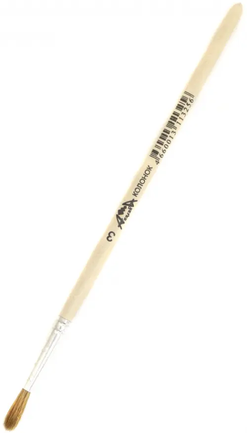 Кисть круглая из волоса Колонка №3. Уникальное сочетание мягкости, упругости и эластичности, что делает кисть практически универсальной. Пучок надежно вклеен в металлическую обойму. Обойма закреплена на деревянной ручке двойным обжатием. Кисть предназначена для рисования маслом, гуашью, акварелью, акриловыми красками.