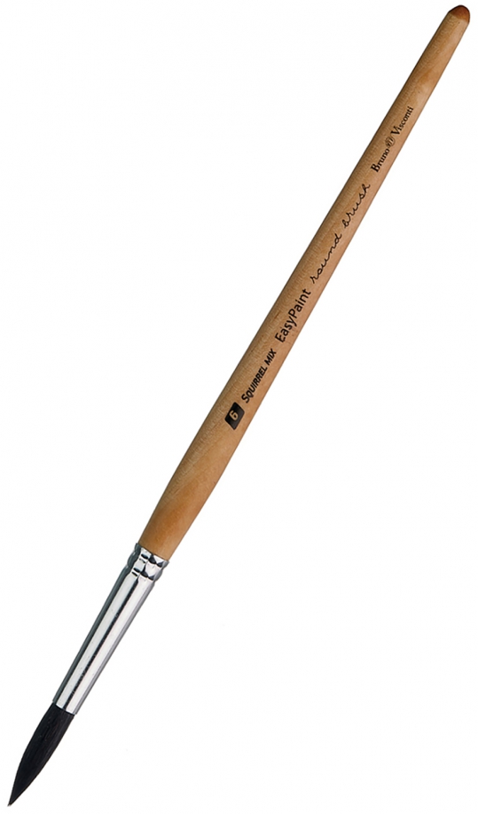 Кисть с ворсом из натуральной белки, армированной синтетическим ворсом. Комбинация натуральных и искусственных волокон в одном пучке придаст нужную эластичность. Кистью из армированной белки удобно писать в технике акварели.