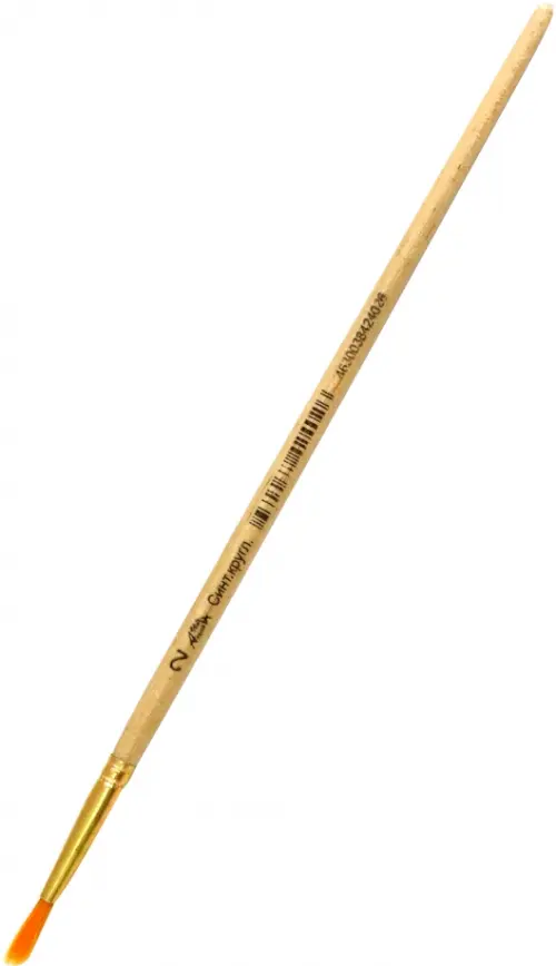 Кисть круглая из синтетического волоса №2. Аналог натурального волоса, параметры мягкости и эластичности практически эдентичны, напоняемость краской немного ниже. Пучок надежно вклеен в металлическую обойму. Обойма закреплена на деревянной ручке двойным обжатием. Кисть предназначена для рисования гуашью, масленными и акриловыми красками, а также для нанесения клея.