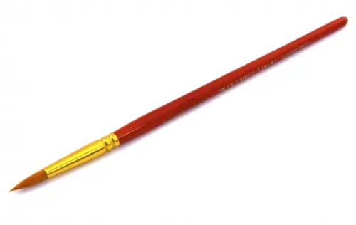 Высококачественная кисть из синтетического волоса. Кисть сохраняет свою упругость при намокании. Отличается долгим сроком службы. Подходит для всех типов красок: акварель, гуашь, масло, акрил. Снабжена защитным пластиковым колпачком.