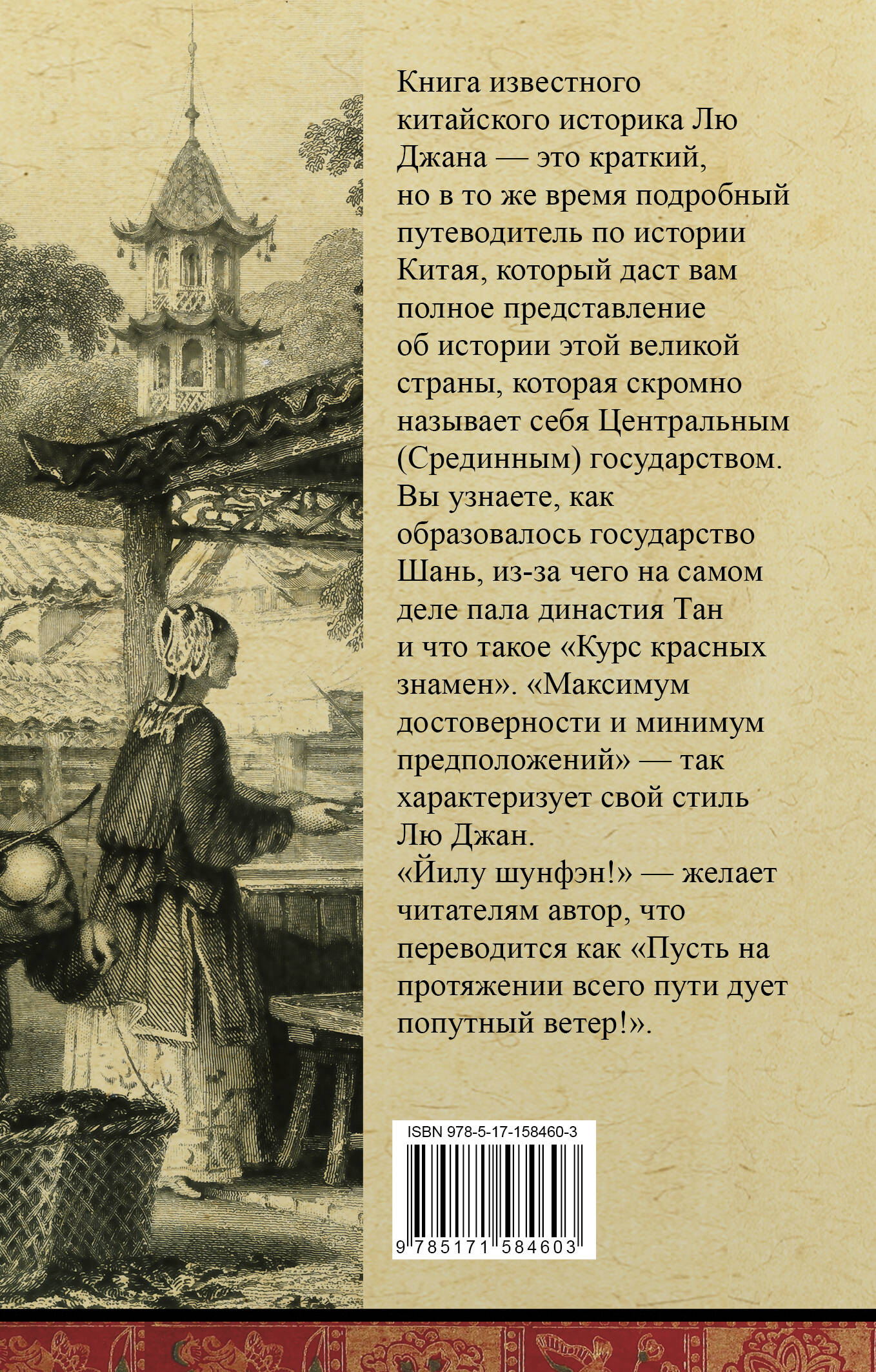 Книга известного китайского историка Лю Джана - это краткий, но в то же время подробный путеводитель по истории Китая, который даст вам полное представление о истории этой великой страны, которая скромно называет себя Центральным (Серединным) Государством. Вы узнаете как образовалось государство Шань, из-за чего на самом деле пала династия Тан и что такое "Курс красных знамен". "Максимум достоверности и минимум предположений" - так характеризует свой стиль Лю Джан. "Йилу шунфэн!", - желает читателям автор, что переводится как "Пусть на протяжении всего пути дует попутный ветер!".| Издательство | Издательство "АСТ" |