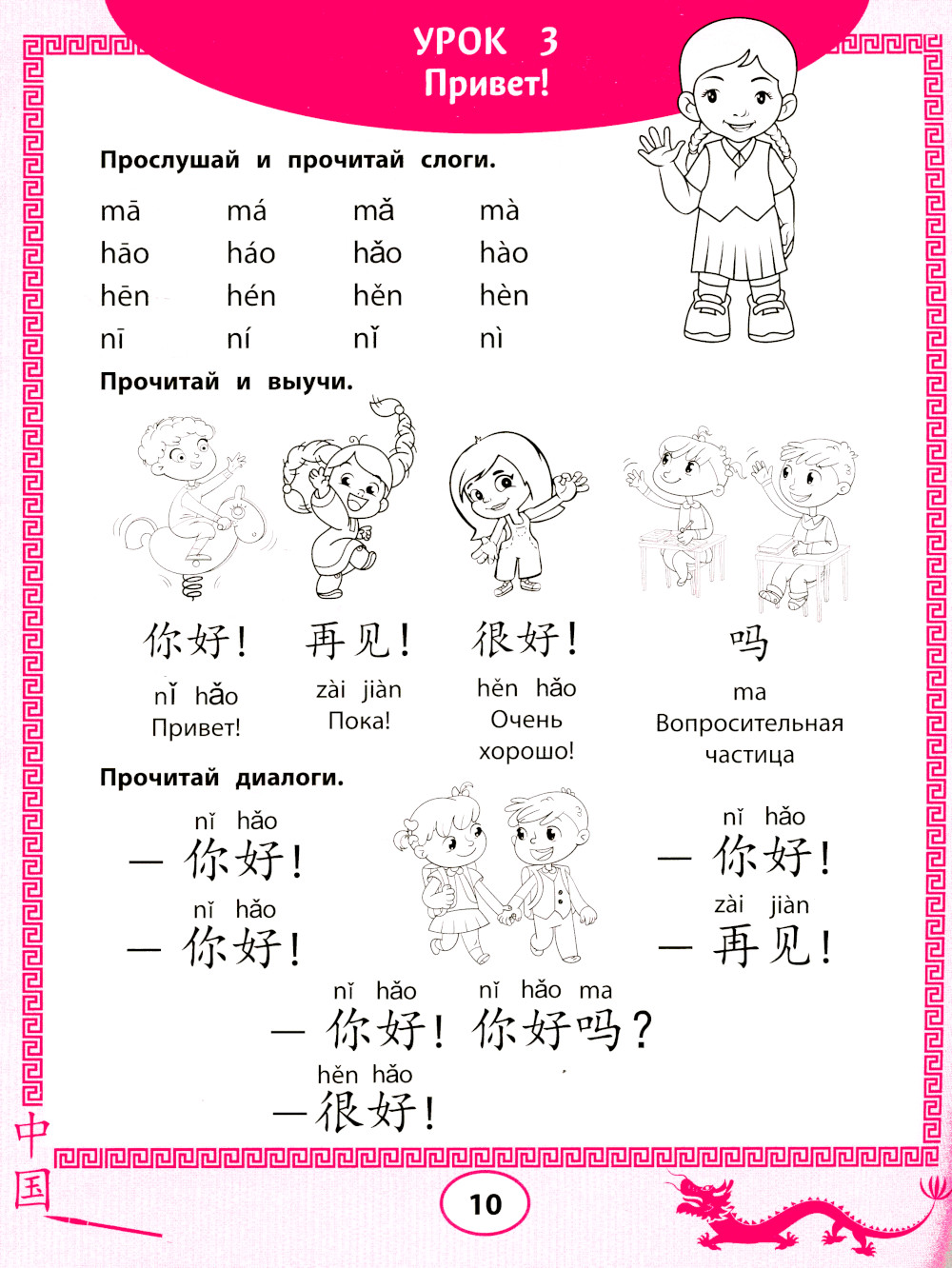 Учебно-методическое пособие предназначено для детей дошкольного и младшего школьного возраста, начинающих изучать китайский язык. Ребенок и его родители совместно смогут научиться китайскому счету до 10, освоят приветствие и знакомство, научатся рассказывать о своей семье и ее членах, а также выучат основные цвета, названия фруктов и животных. Картинки-раскраски облегчат ребенку процесс усвоения новых слов, аудиоприложение научит правильному произношению, а легкие упражнения и прописи с порядком черт помогут быстрее запомнить иероглифы.| Издательство | Феникс |