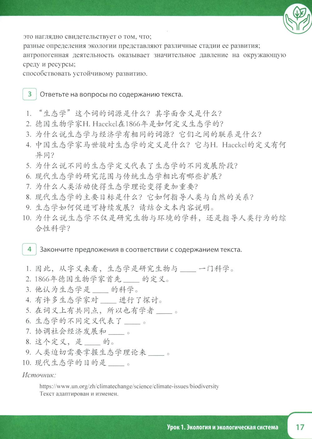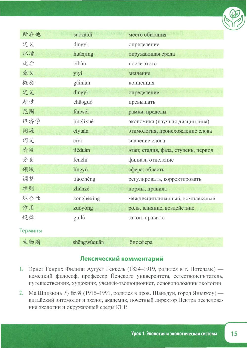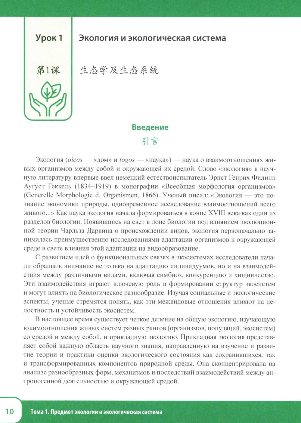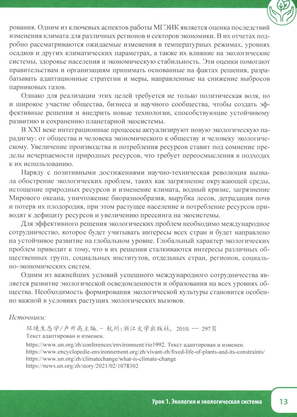 В связи с ростом сотрудничества между Россией и Китаем по различным направлениям, в том числе и по вопросам экологии, защиты окружающей среды, возникает необходимость создания учебных пособий для подготовки специалистов-экологов со знанием китайского языка. Настоящее учебное пособие составлено на основе аутентичных текстов, информационных сообщений китайских каналов и имеет практическую направленность. Учебные материалы ориентированы на применение знаний, умений и навыков в профессиональных ситуациях, на формирование иноязычной коммуникативной компетенции на уровне владения В2+ и вносят значимый вклад в развитие методологии и технологии профессионального образования в области изучения китайского языка. Учебное пособие предназначено для студентов, изучающих китайский язык по направлению 05.03.06 «Экология и природопользование» (профиль «Глобальная экологическая политика» и «Климатическая и экологическая безопасность»), а также может быть использовано преподавателями и студентами языковых и неязыковых вузов, реализующих программы обучения по экологическим специальностям.| Издательство | Восточная книга |