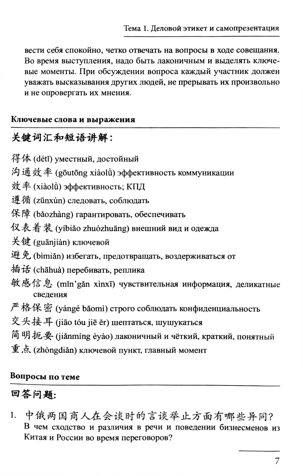 Учебное пособие «Китайский язык в современном бизнесе. Практикум для начинающих» создано для учащихся, желающих овладеть знаниями о российско-китайском бизнесе в ситуациях конкретного взаимодействия, а также навыками делового китайского языка. Изучение данного курса призвано развить способность к эффективному общению в деловой среде, понять основы делового китайского языка и процесса переговоров, заложить фундамент для будущей коммерческой и другой активности. Курс включает в себя двенадцать тем. В каждом занятии есть теоретическая часть, где дано видение китайской стороны той или иной бизнес-задачи, а также описан процесс подготовки и ее выполнения. В книге содержатся тематические диалоги с китайским партнером - от знакомства до обсуждения договора и торговой активности, а также типовые формы для заполнения, принятые в делопроизводстве КНР. Новые слова и выражения приводятся списком после каждой теоретической части и диалогов. Актуальная лексика, тематические языковые клише и принятые в Китае названия известных компаний позволят понимать китайский язык на современных бизнес-переговорах. Выполнение заданий и поиск ответов на вопросы занятий помогут разбираться в бизнес-обстановке и уверенно говорить в соответствующих ситуациях контактов с китайской стороной.| Издательство | Восточная книга |