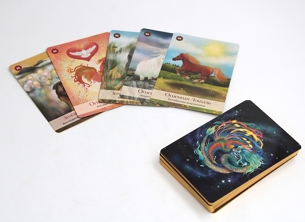 Теперь у вас есть возможность обращаться за духовным советом к этому великолепному набору карт, который откроет перед вами портал даосской мудрости и целительный мир китайской астрологии! На картах изображены 60 возможных комбинаций (или столпов) из десяти небесных стволов, представляющих характеристики инь и ян пяти стихий (Дерево, Огонь, Земля, Металл, Вода), и двенадцати земных ветвей (зодиакальных животных) китайской астрологии.