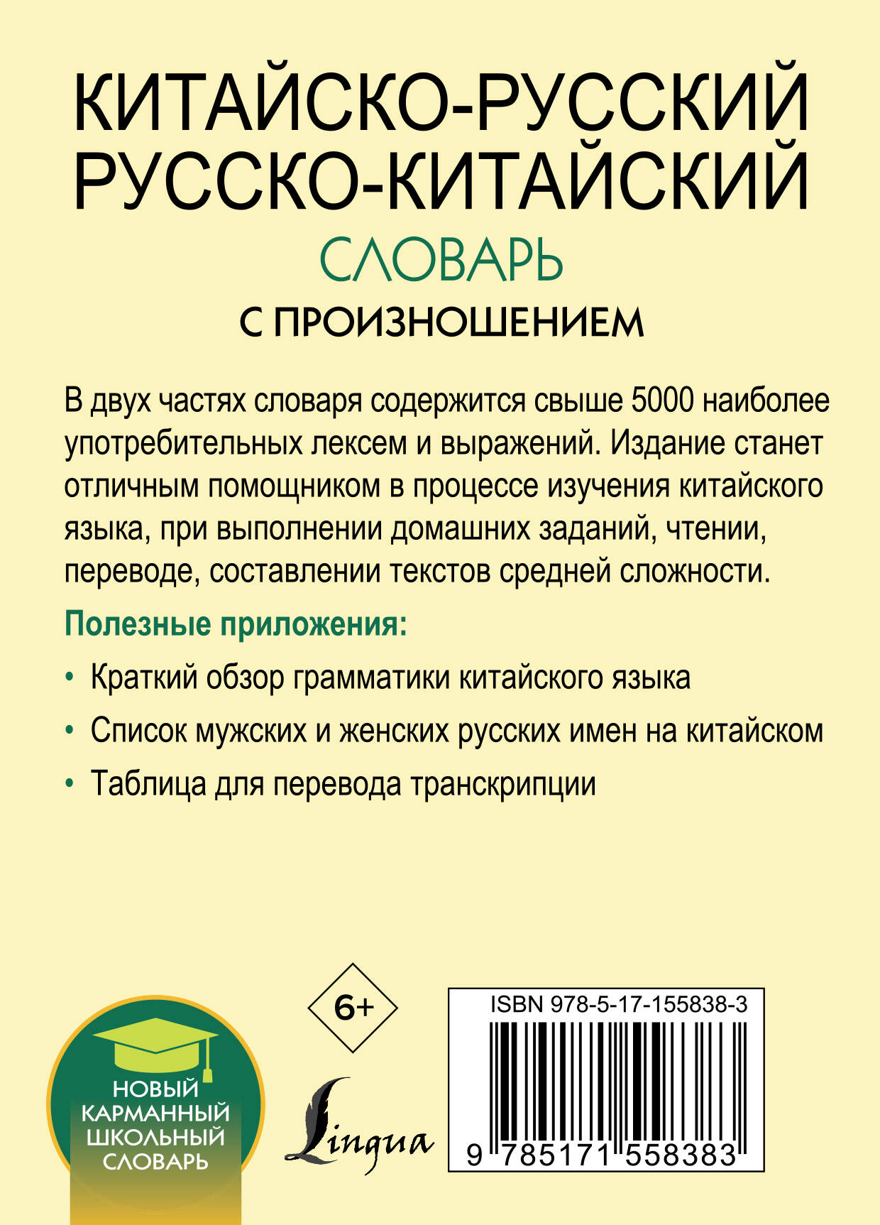 Аннотация: Китайско-русский русско-китайский словарь с произношением