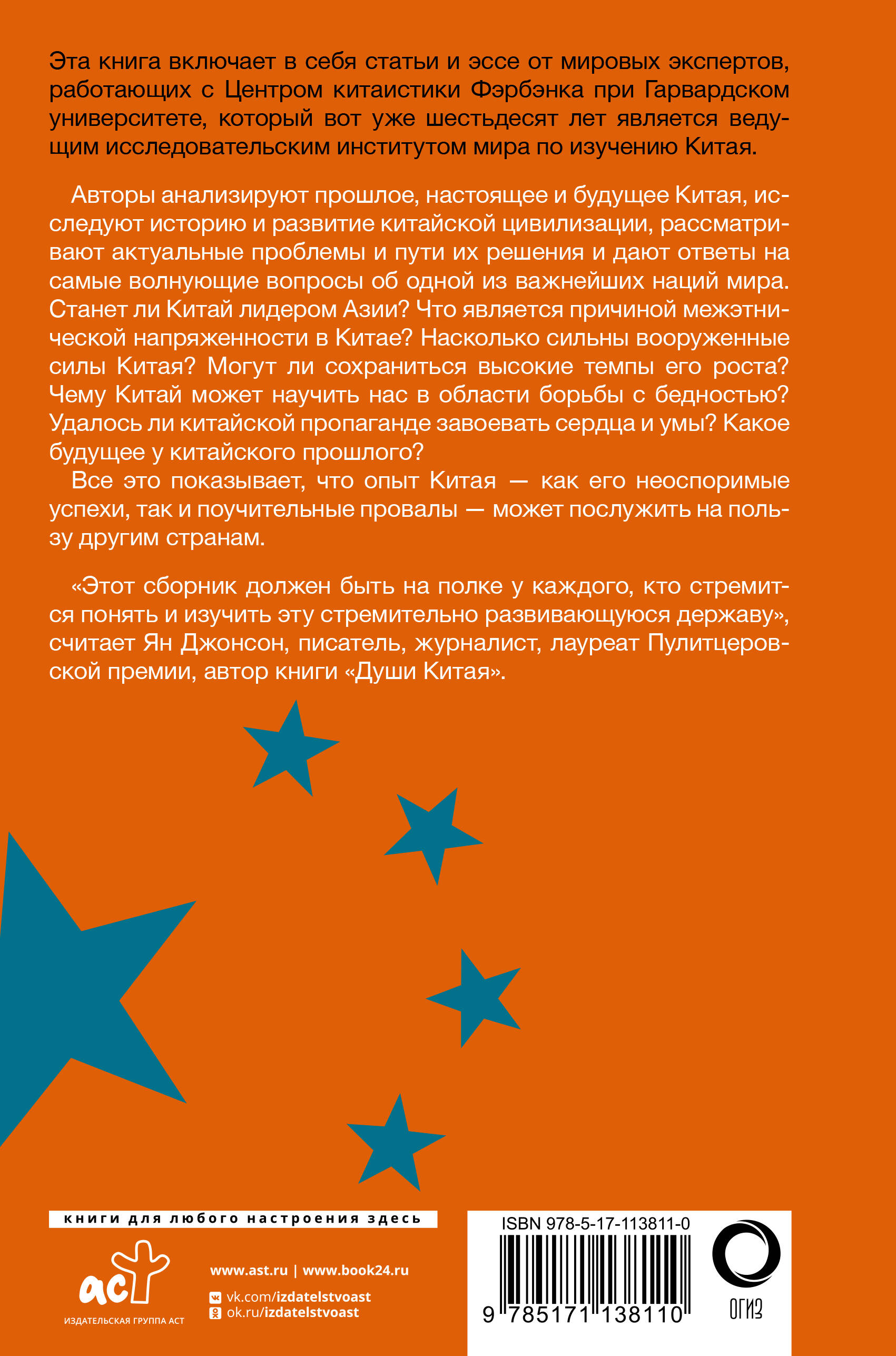 Эта книга включает в себя статьи и эссе от мировых экспертов, работающих с Центром китаистики Фэрбэнка при Гарвардском университете, который вот уже шестьдесят лет является ведущим исследовательским институтом мира по изучению Китая. Авторы анализируют прошлое, настоящее и будущее Китая, исследуют историю и развитие китайской цивилизации, рассматривают актуальные проблемы и пути их решения, и дают ответы на самые волнующие вопросы об одной из важнейших наций мира. Станет ли Китай лидером Азии? Что является причиной межэт- нической напряженности в Китае? Что значит долголетие для руководства Китая? Подрывает ли внешне политические интересы Китая его исключительность? Насколько сильны вооруженные силы Китая? Могут ли сохраниться высокие темпы его роста? Чему Китай может научить нас в области борьбы с бедностью? Удалось ли китайской пропаганде завоевать сердца и умы? Какое будущее у китайского прошлого? Все это показывает, что опыт Китая - как его неоспоримые успехи, так и поучительные провалы - может послужить на пользу другим странам.