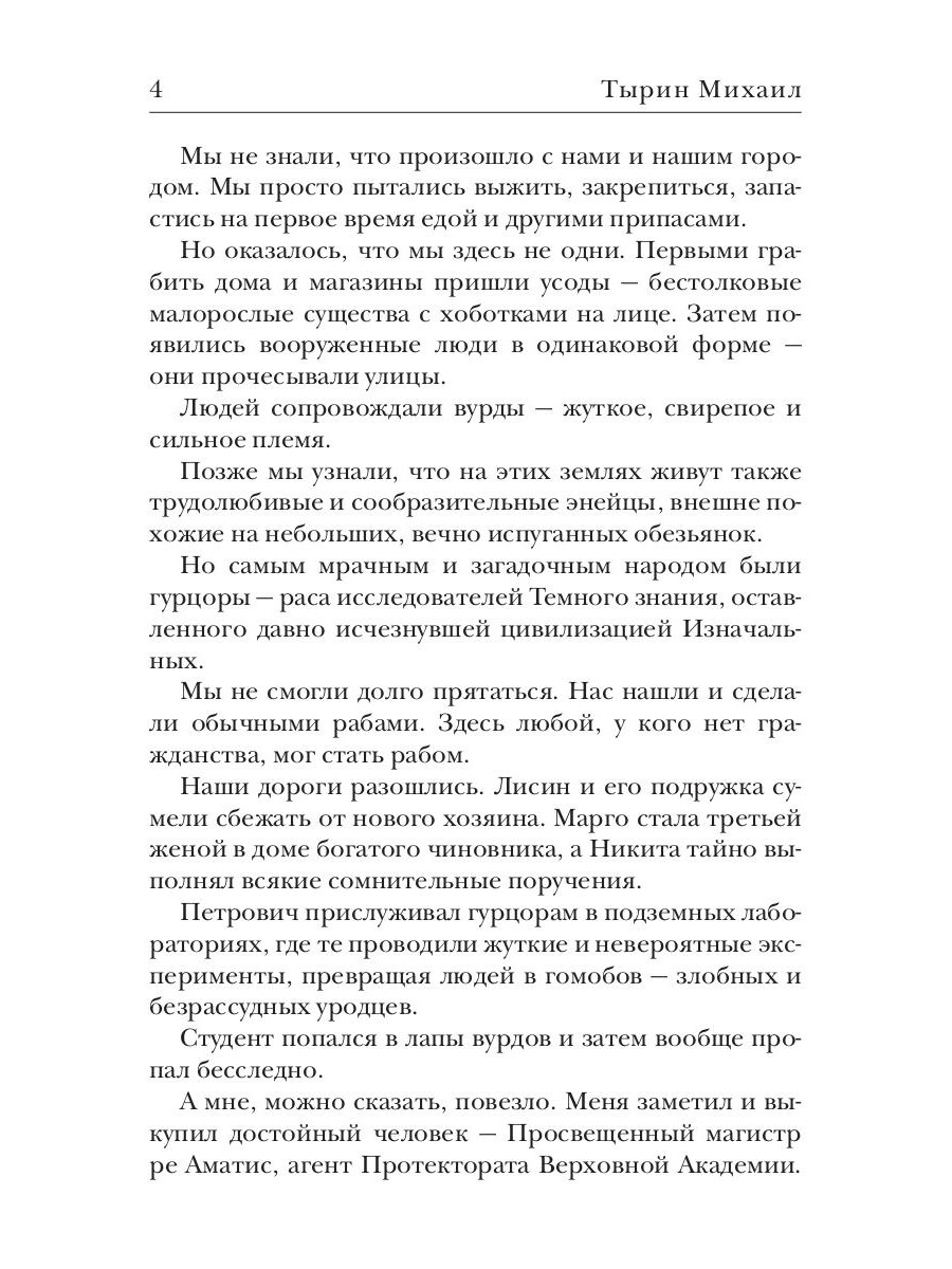 Бывший десантник Влад Самохин, оказавшись вместе с группой случайных товарищей в мире Кладбища Богов, сумел выжить. Более того, он принял высокий титул Просвещенного Магистра. Впрочем, в первую очередь он боец, а не книжник. Мог ли он знать, принимая звезду магистра из рук умирающего Аматиса, что вот-вот наступят лютые времена? Что на Ванталу нападут зловещие гурцоры - адепты Темного знания? Что, используя зеркала перемещения, они наводнят столицу мира невиданными чудовищами, безжалостно истребляющими всех, кого считают чужими? Что придется ему, обученному и храброму солдату, спасать чужой мир, взяв в руки привычный АКМ?..| Издательство | Т8 RUGRAM |