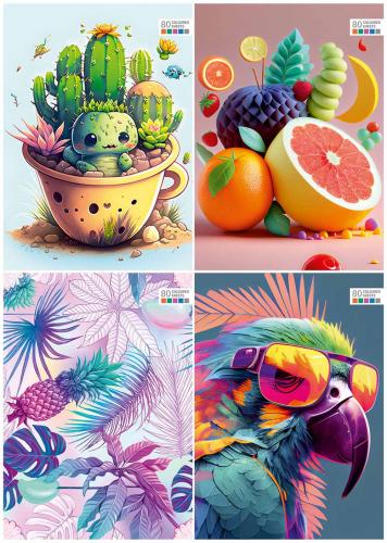 Klade A5 izmērs: 14x20cm 80 lapas sadalītas pa 16lapam , katras 16 lpas cita krāsā: rūtiņas oranžas , zilas,zaļas pelēkas un violetas