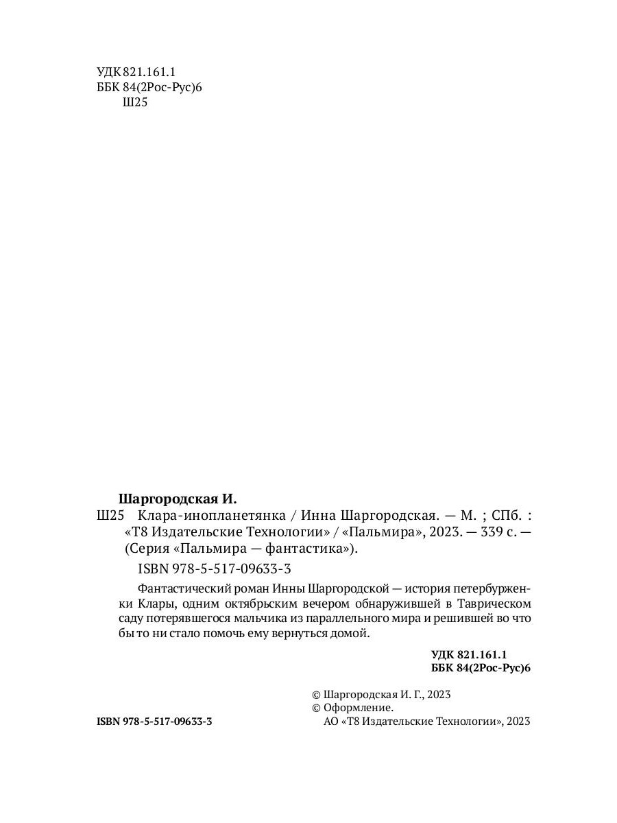 Фантастический роман Инны Шаргородской - история петербурженки Клары, одним октябрьским вечером обнаружившей в Таврическом саду потерявшегося мальчика из параллельного мира и решившей во что бы то ни стало помочь ему вернуться домой.