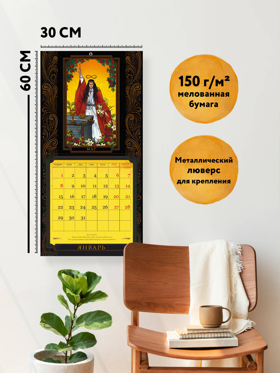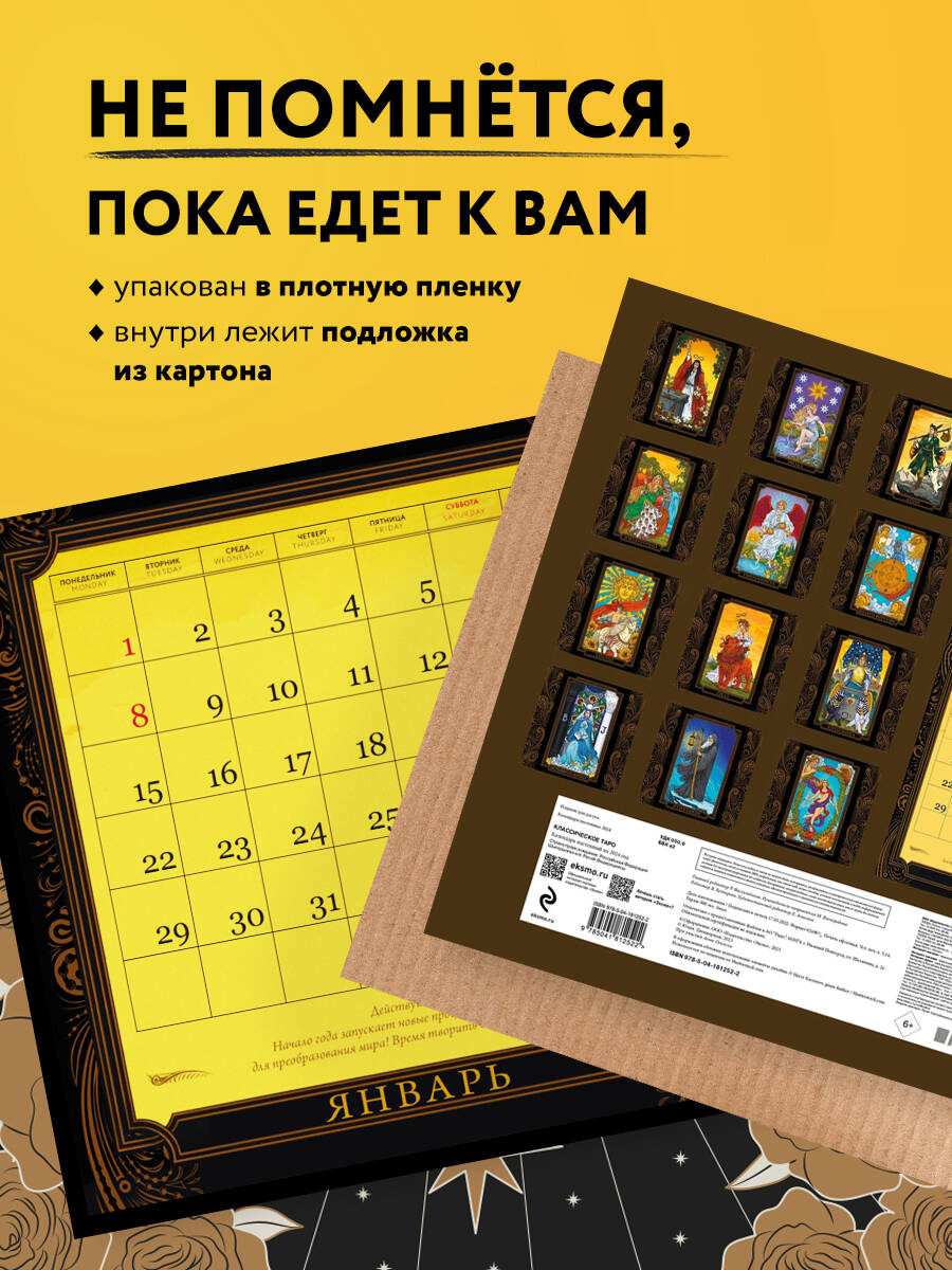 О календаре: Золотая классика Таро в новом современном прочтении круглый год! В основу этого календаря легли 12 архетипических образов Старших арканов Таро, вдохновленные бессмертной колодой Артура Уэйта и Памелы Колман Смит. Иллюстрации художницы Юлии Циммерман выполнены в современном красочном стиле, однако обновленная версия культовых образов Таро сохранила символизм и цветовые решения классики. Все карты-месяцы снабжены пожеланиями и напутствиями от таролога Анны Огински. Яркие детализированные иллюстрации органично дополнят ваш интерьер, а удобная календарная сетка с указанием выходных дней и государственных праздников поможет планировать время. Для кого: Высокое качество полиграфического исполнения прекрасно дополняет яркие детализированные иллюстрации Юлии Циммерман. Этот календарь порадует всех любителей классического Таро и ценителей прекрасного. О серии: Наши настенные календари отличаются высоким качеством исполнения! Тщательно подобранные иллюстрации, напечатанные на глянцевой бумаге высочайшего качества, станут настоящим украшением дома, а в календарной сетке найдется место для ваших планов: большие клетки позволят делать записи и организовать свой год! В календаре также отмечены все государственные праздники. В серии настенных календарей издательства «ЭКСМО» каждый найдет тему по вкусу: великие художники, великолепные подборки с самыми знаменитыми произведениями искусства, легендарные кинематографические саги и игры, главные книжные авторы и бестселлеры, фотографии и иллюстрации любимых животных и многое-многое другое! Технические параметры: - Тип календаря - настенный перекидной. - Год - 2024. - Календарная сетка - с разбивкой по месяцам. - Вид скрепления - скрепка. - Ширина - 30 см. - Высота - 30 см. - Внутренний блок - мелованная бумага 150 г/м2. - Подложка - плотный гофрокартон для поддержания формы. - Индивидуальная упаковка в плотный целлофановый пакет.| Издательство | ООО "Издательство "Эксмо" |