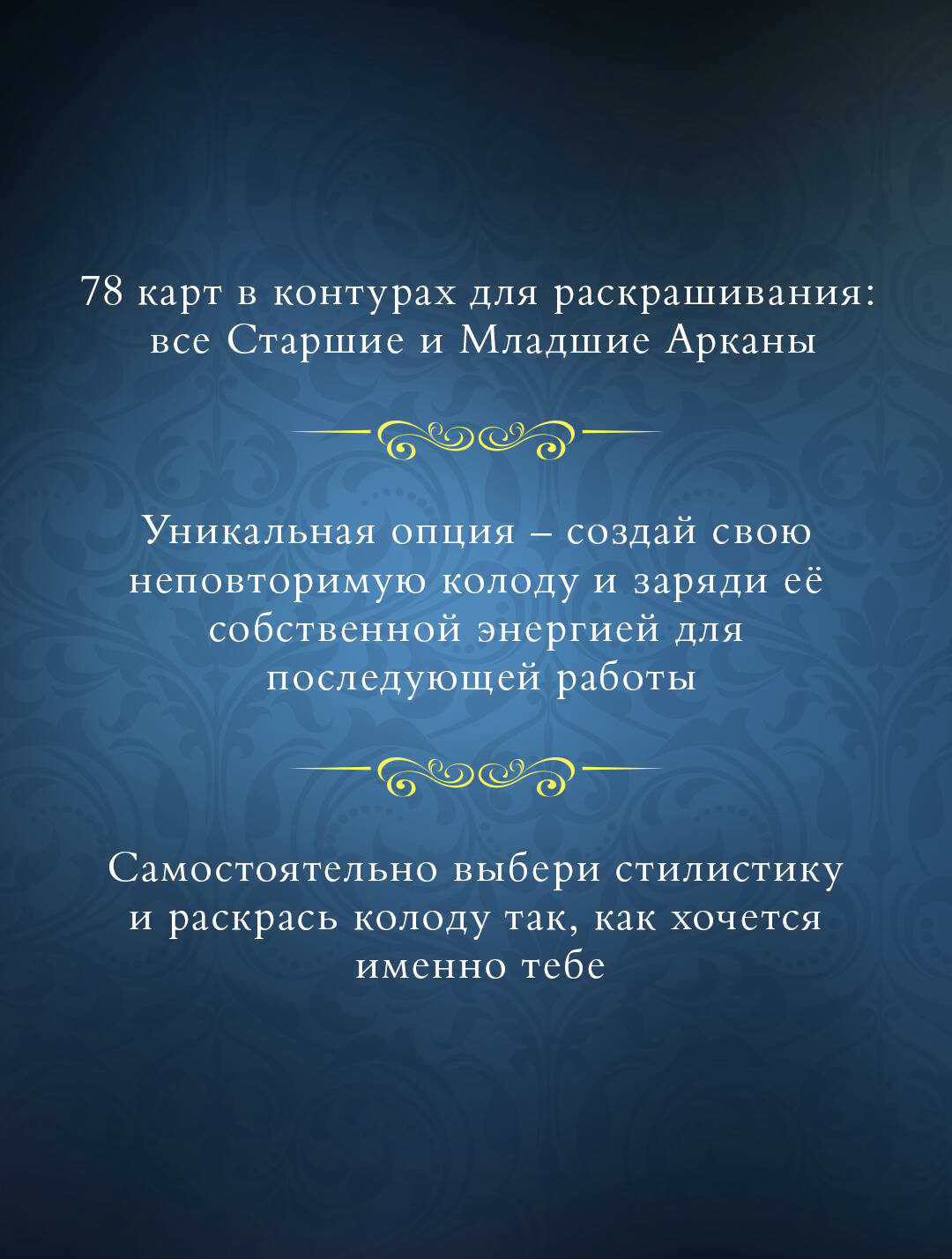 Аннотация: Классика Таро в иллюстрациях Памелы Колман Смит. Раскрась свою колоду