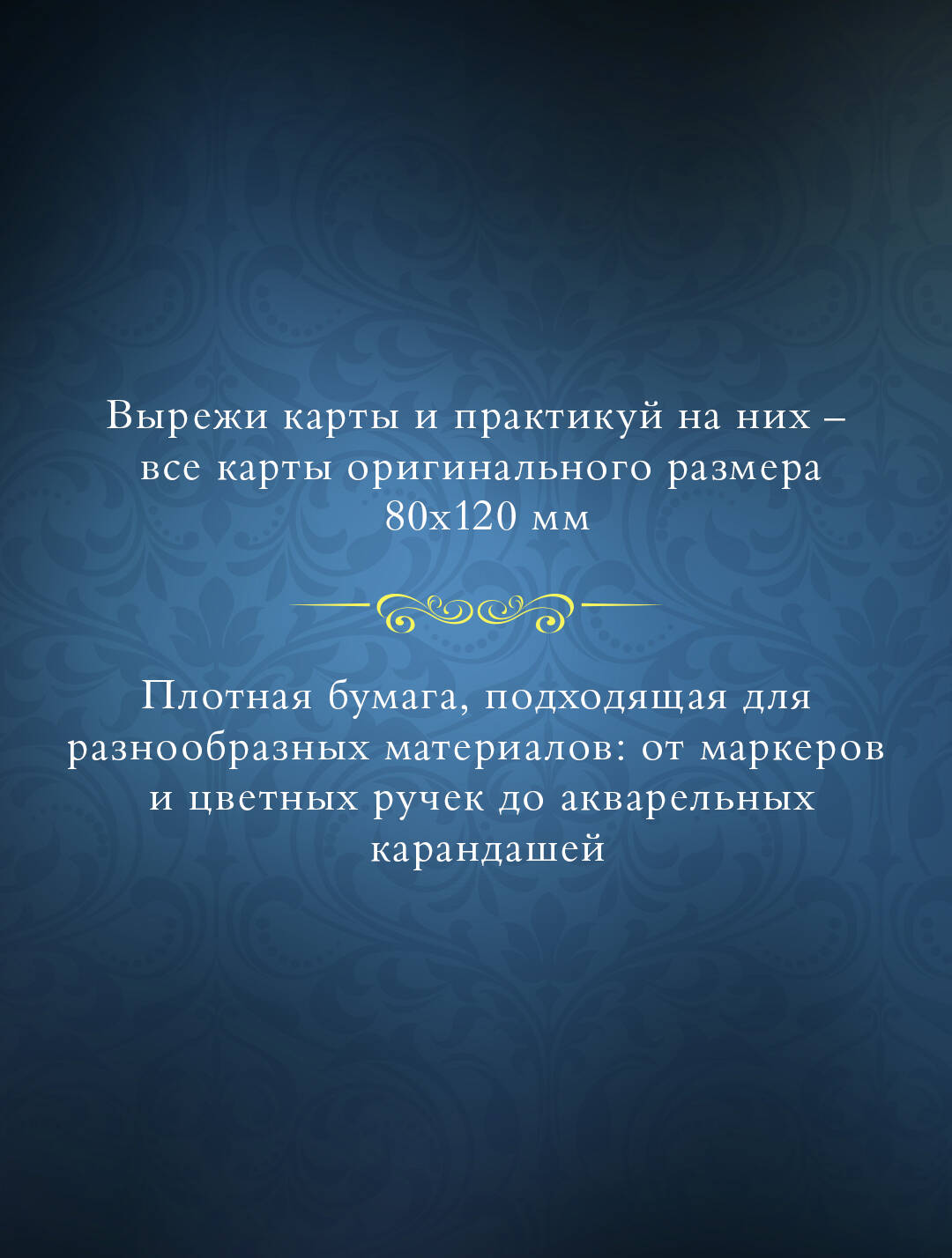 Созданная в начале XX века колода Таро Уэйта - одна из самых популярных сегодня. Уникальная система образов, лежащая в основе 78 карт, разработана известным исследователем мистических учений Артуром Уэйтом и воплощена в иллюстрациях Памелы Колман Смит. Теперь у вас появилась возможность по своему усмотрению раскрасить карты этой известной колоды Таро. Подарите новые цвета знакомым образам, и карты в ответ помогут разобраться в себе, отделить истинные желания от ложных и увидеть решение сложной ситуации. Раскрасьте и вырежьте свою колоду! • 78 контурных иллюстраций карт стандартного размера с рубашками на обороте. • Карты подготовлены специально для раскрашивания и последующего вырезания. • Сверхплотная офсетная бумага подходит для любых художественных материалов - от цветных карандашей и ручек до маркеров. Без просвечивания и отмарывания.