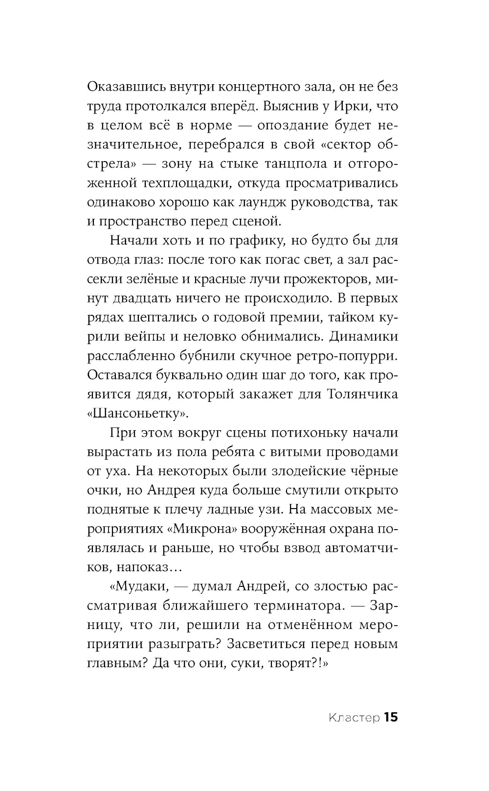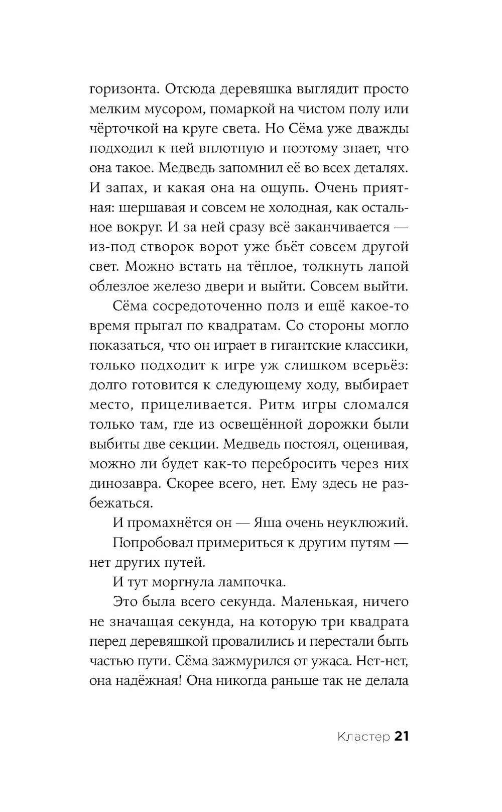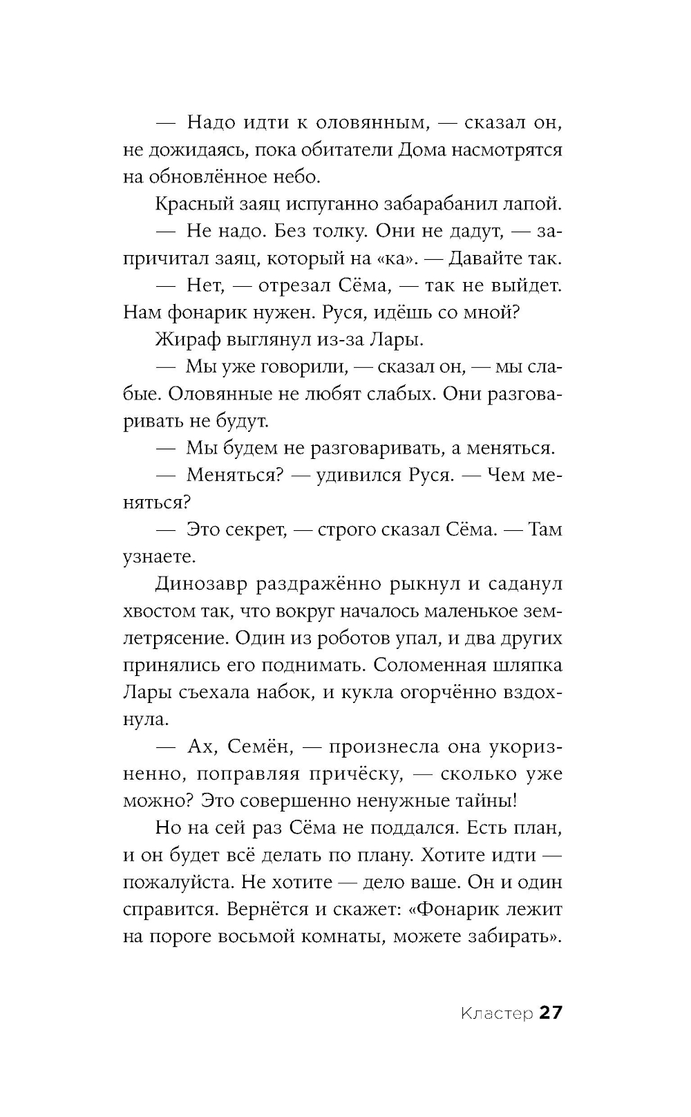 Три корпорации схлестнулись в смертельной схватке за право создавать уникальный инновационный материал. Того, кто освоит производство полупроводника арсенид голландия, ждут несметные богатства и неограниченная власть. Но дело в том, что кластер - объединённое гнездо конкурирующих корпораций - потёмкинская деревня промышленного масштаба. Главное противостояние идёт на двух уровнях: информационном и... игрушечном. Нет, это не ошибка. Побочный эффект чудо-полупроводника - ожившие игрушки, населяющие детский мир с недетскими мечтами о свободе, которую нельзя обрести без боли и потерь.