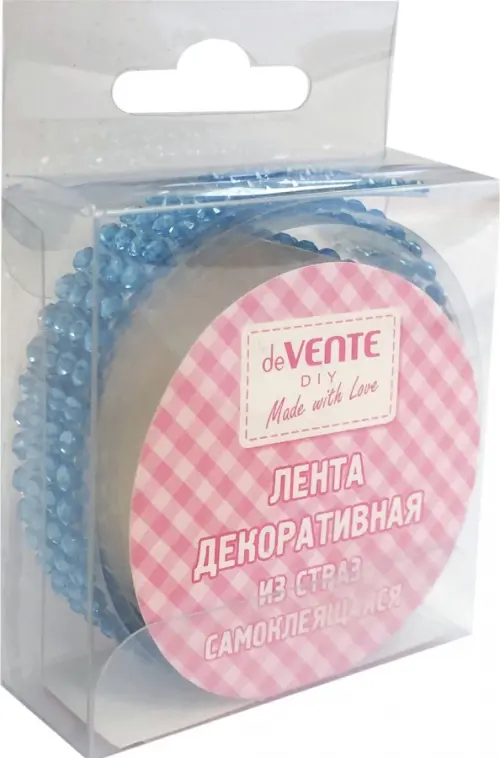 Клейкая лента декоративная "deVENTE. Стразы" бирюзовая, акриловые стразы на полиэтиленовой основе, 16 ммx50 см, картонная втулка, в пакете с блистерным подвесом