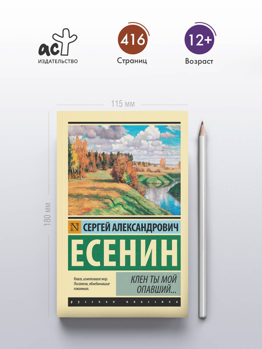 Стихи и поэмы Есенина, собранные под этой обложкой, дают полное представление о многогранности его таланта. Его лирический герой, человек легкий и солнечный, в то же время философ, задумывающийся о бренности земного, о призрачности любви, о предательстве и коварстве. "Клен ты мой опавший…", "Отговорила роща золотая…", "Не жалею, не зову, не плачу…" - строки этих и других есенинских стихов стали поистине народными и до сих пор обжигают сердца читателей.| Издательство | ИЗДАТЕЛЬСТВО "АСТ" |