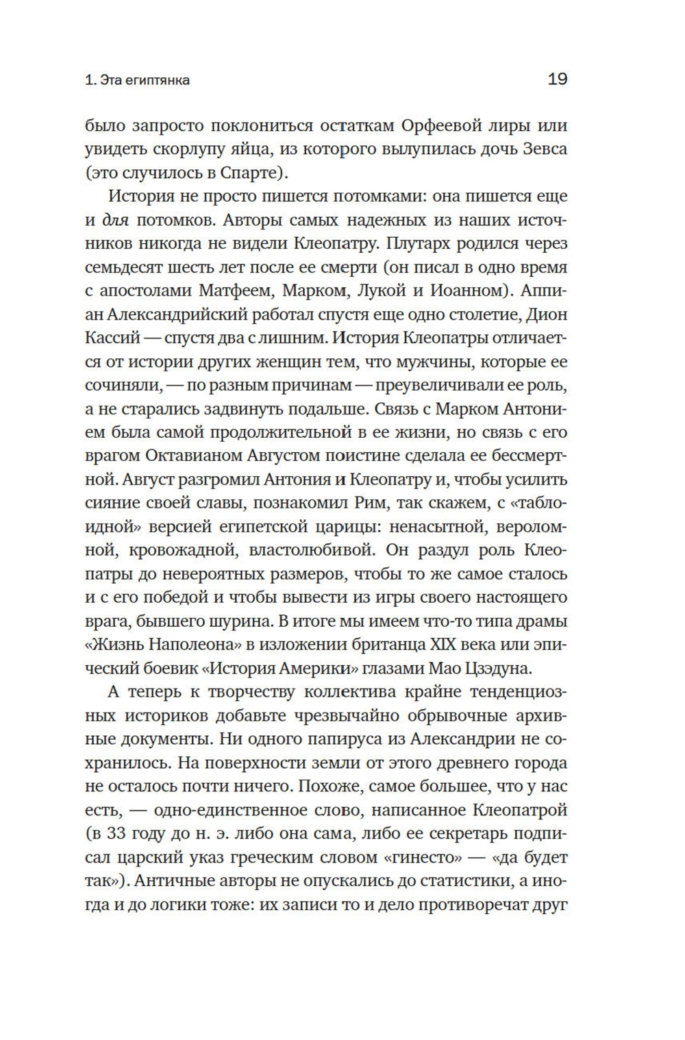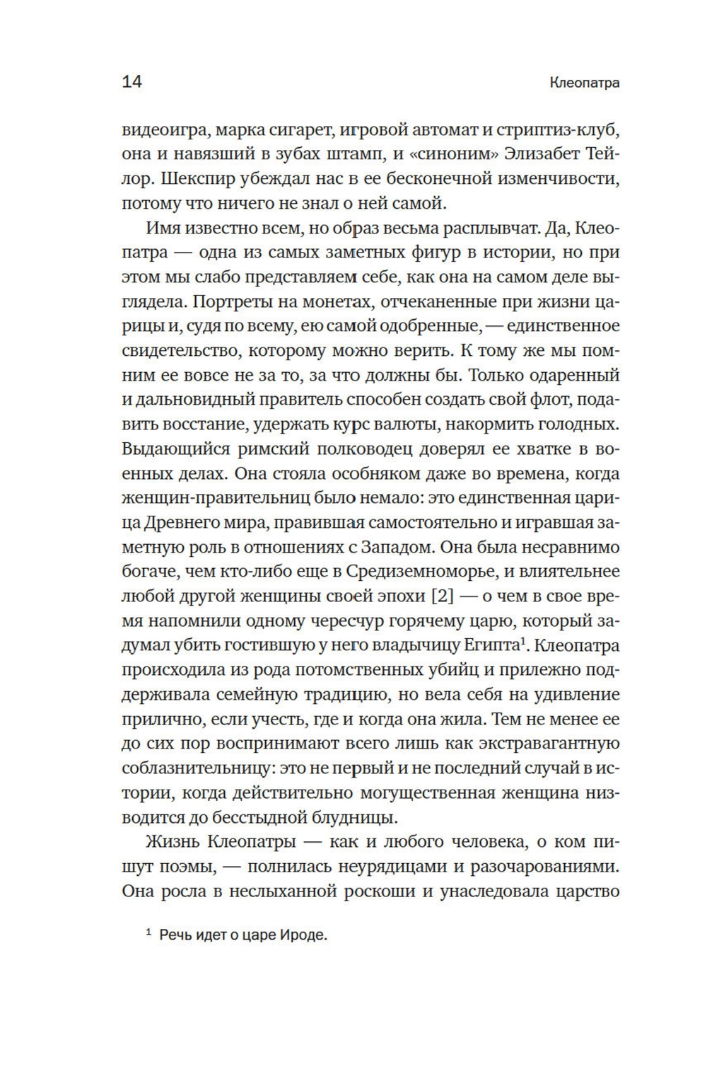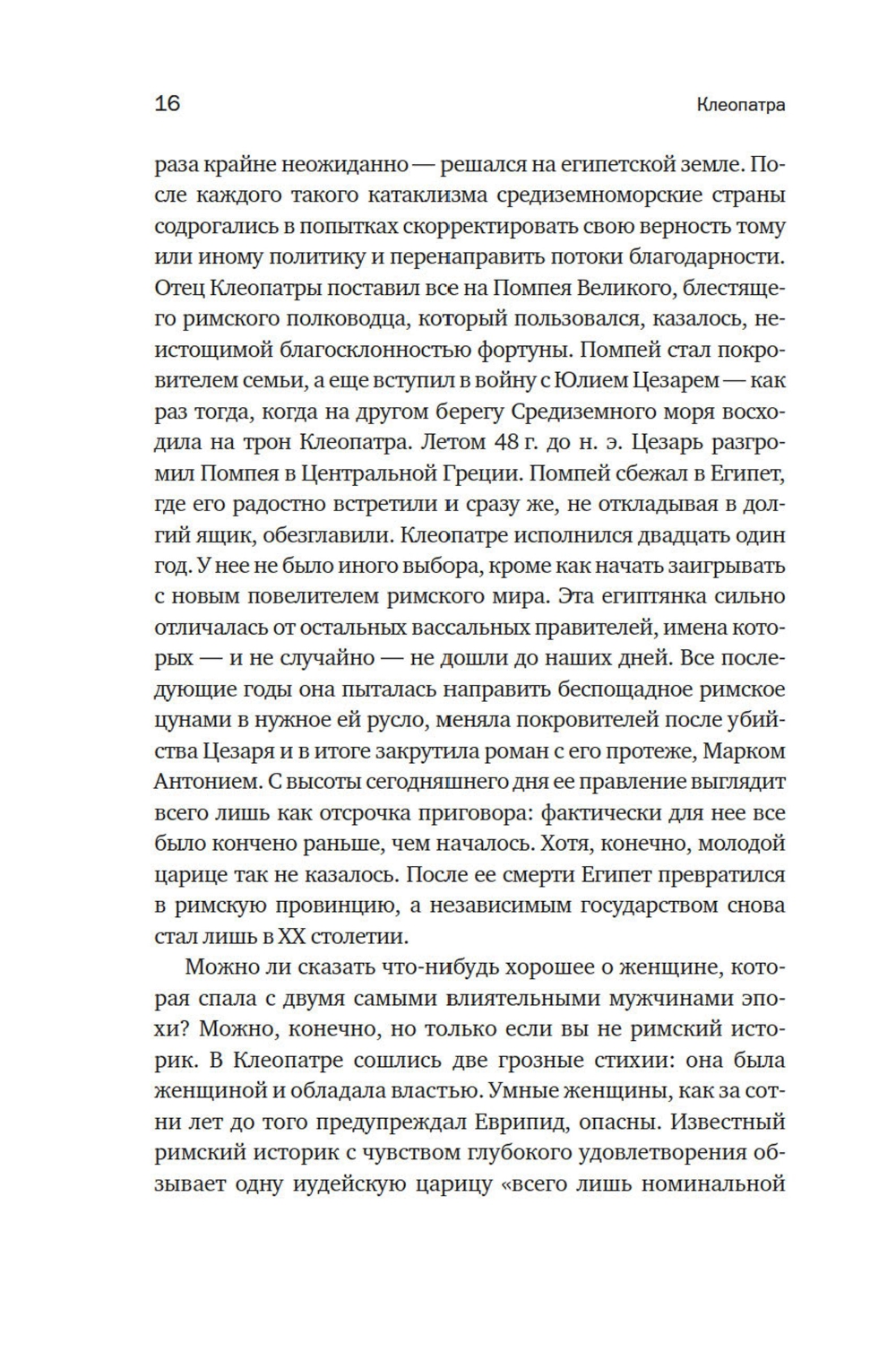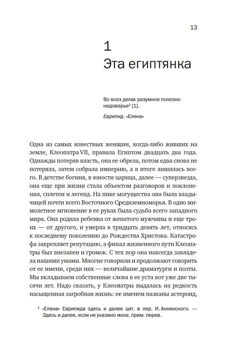 Последняя владычица Египта, знаменитая царица Клеопатра по праву считается одной из самых ярких и неоднозначных женщин в мировой истории. Ее образ воссоздавали Уильям Шекспир и Бернард Шоу, Микеланджело Буонарроти и Джованни Баттиста Тьеполо, а многие из наших современников судят о внешности и характере царицы по ее кинематографическому «двойнику» - блистательной Элизабет Тейлор. Однако многие сведения о жизни царицы утрачены или мифологизированы, а ее личность затерялась в романтизированных образах. В своем масштабном исследовании, переведенном на 30 языков, лауреат Пулитцеровской премии и мастер биографического жанра Стейси Шифф проделала виртуозную работу с огромным массивом классических источников, чтобы явить миру истинную Клеопатру: сильную правительницу, проницательного стратега и искусного переговорщика. «Смело, грубо, зримо она явилась в мировой политике и повлияла на ход истории. Она убедила народ Египта, что сумерки - это рассвет, и всеми силами этот рассвет приближала. В отчаянной ситуации неистово импровизировала, потом снова импровизировала - кое-кто так определяет гения. Блеск и величие были в ее истории задолго до того, как к ней прикоснулись Октавиан и Шекспир... С первого и до последнего появления нас поражает ее умение продумывать сцену и расставлять декорации. До самого конца она оставалась режиссером своей жизни» (Стейси Шифф).| Издательство | КоЛибри |