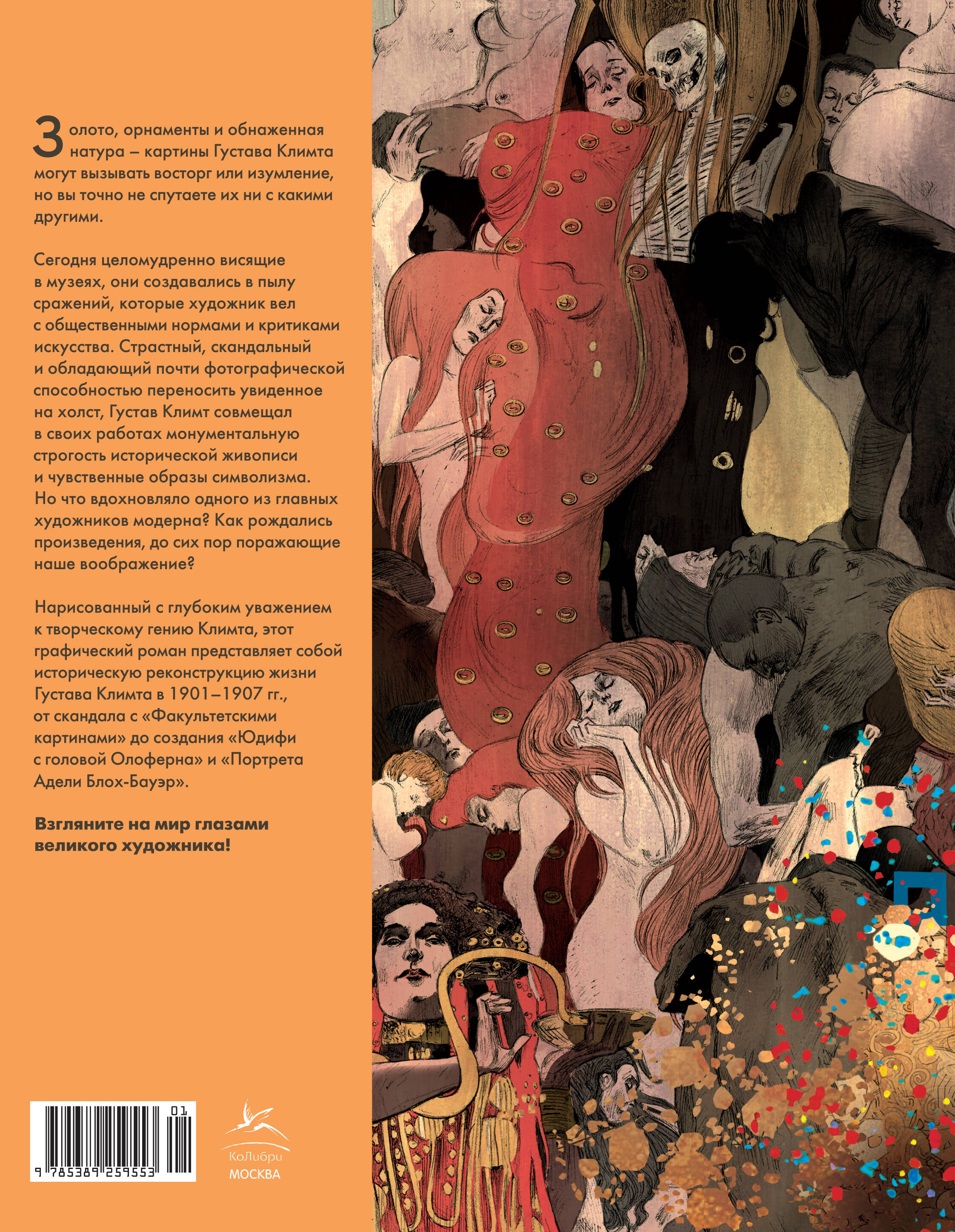 От автора графического романа "Одри Хепберн: ангел с печальными глазами" Золото, орнаменты и обнаженная натура - картины Густава Климта могут вызывать восторг или изумление, но вы точно не спутаете их ни с какими другими. Сегодня целомудренно висящие в музеях, они создавались в пылу сражений, которые художник вел с общественными нормами и критиками искусства. Страстный, скандальный и обладающий почти фотографической способностью переносить увиденное на холст, Густав Климт совмещал в своих работах монументальную строгость исторической живописи и чувственные образы символизма. Но что вдохновляло одного из главных художников модерна? Как рождались произведения, до сих пор поражающие наше воображение? Нарисованный с глубоким уважением к творческому гению Климта, этот графический роман представляет собой историческую реконструкцию жизни Густава Климта в 1901-1907 гг., от скандала с "Факультетскими картинами" до создания "Юдифи с головой Олоферна" и "Портрета Адели Блох-Бауэр". Взгляните на мир глазами великого художника!| Издательство | Азбука-Аттикус Издат.группа ООО |