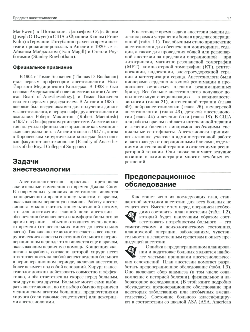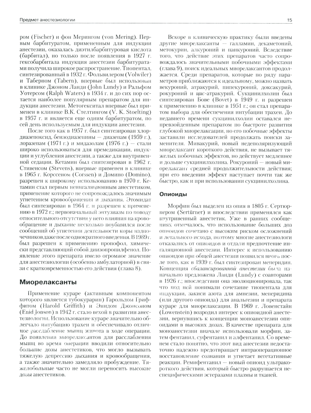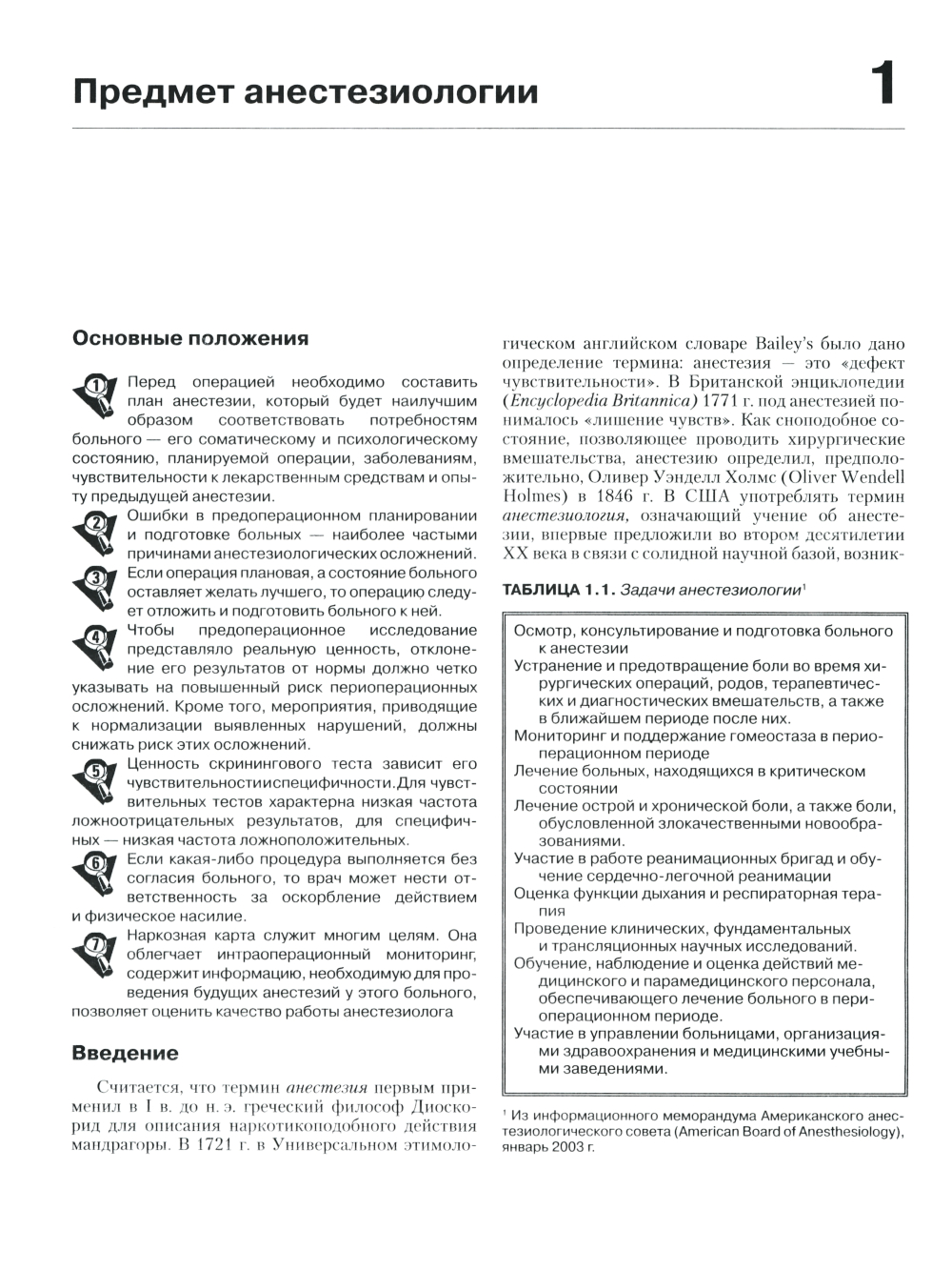 Рассматриваются предмет и история развития анестезиологии; устройство и правила эксплуатации анестезиологического оборудования; методы мониторинга состояния больных во время оперативных вмешательств; клиническая фармакология анестетиков и лекарственных средств, используемых при проведении анестезии; вопросы лечения боли и регионарной анестезии, а также методы, применяемые при различных патологических состояниях (болезни нервной, сердечно-сосудистой, дыхательной, пищеварительной и др. систем организма), а также у гериатрических больных и детей. Руководство предназначено для врачей-анестезиологов, реаниматологов и студентов медицинских учебных заведений.| Издательство | Бином |